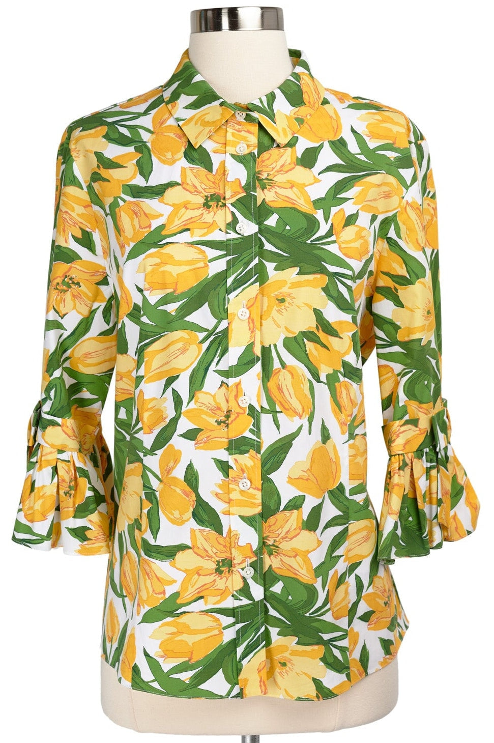 Carolina Herrera Floral Poplin Shirt in yellow, green, and white