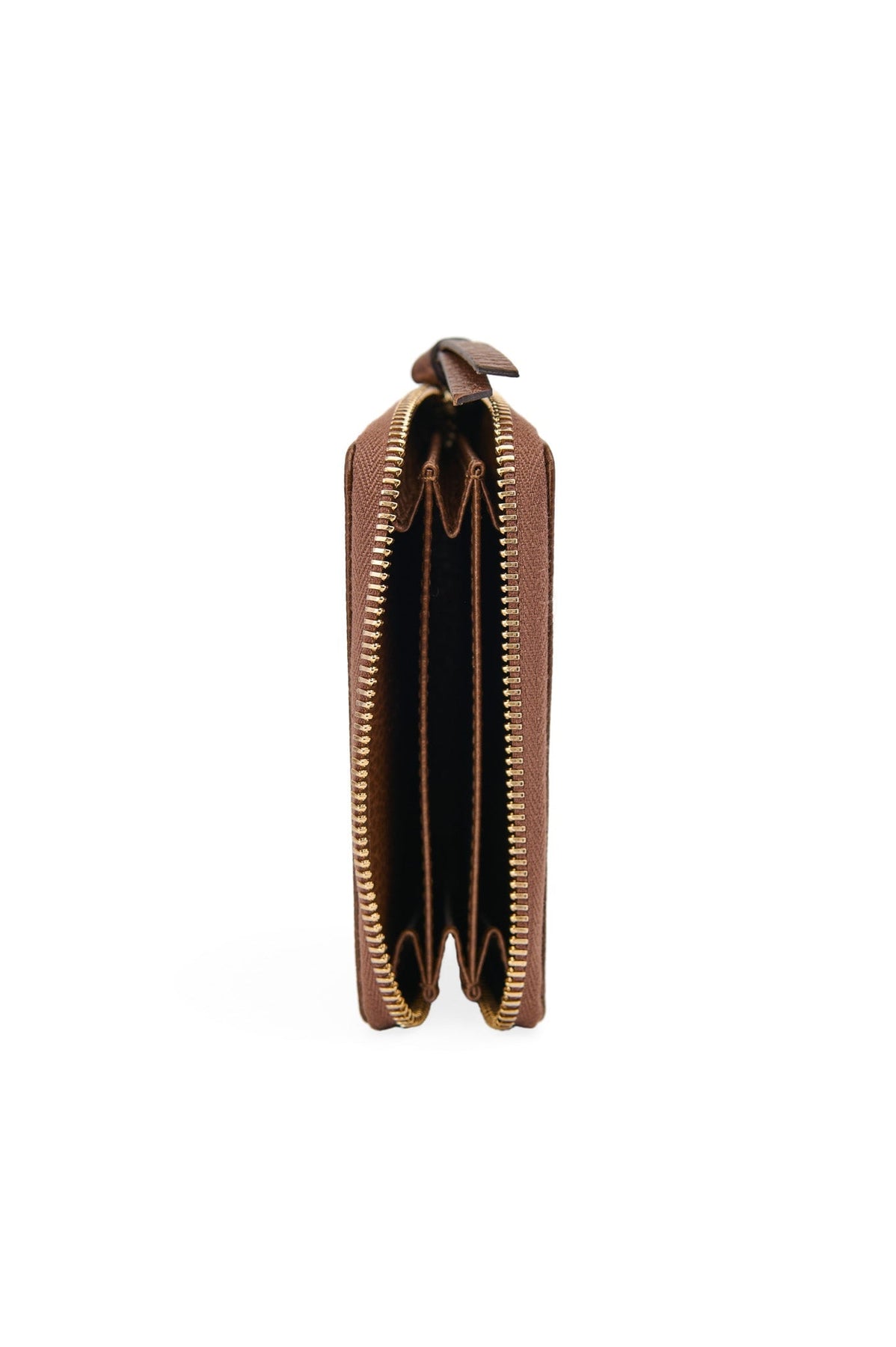 Brown leather interior with three sections