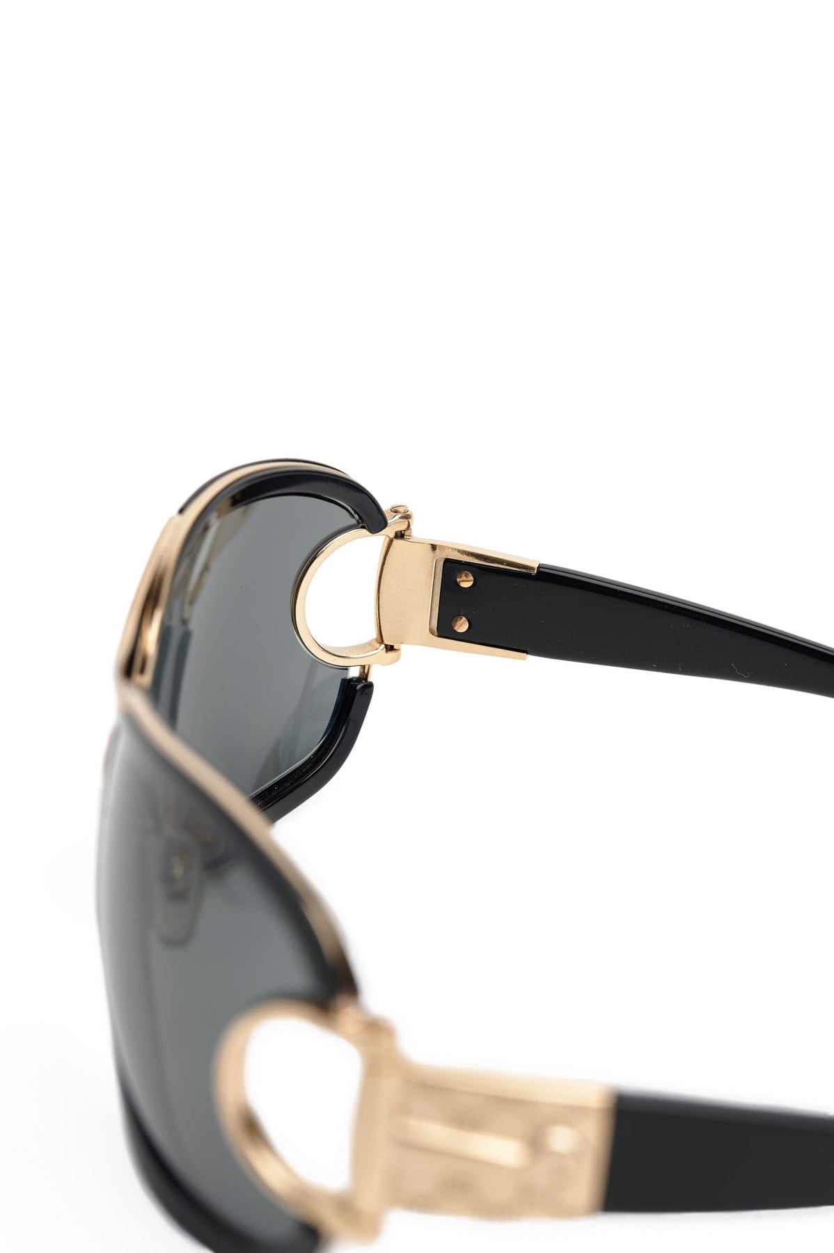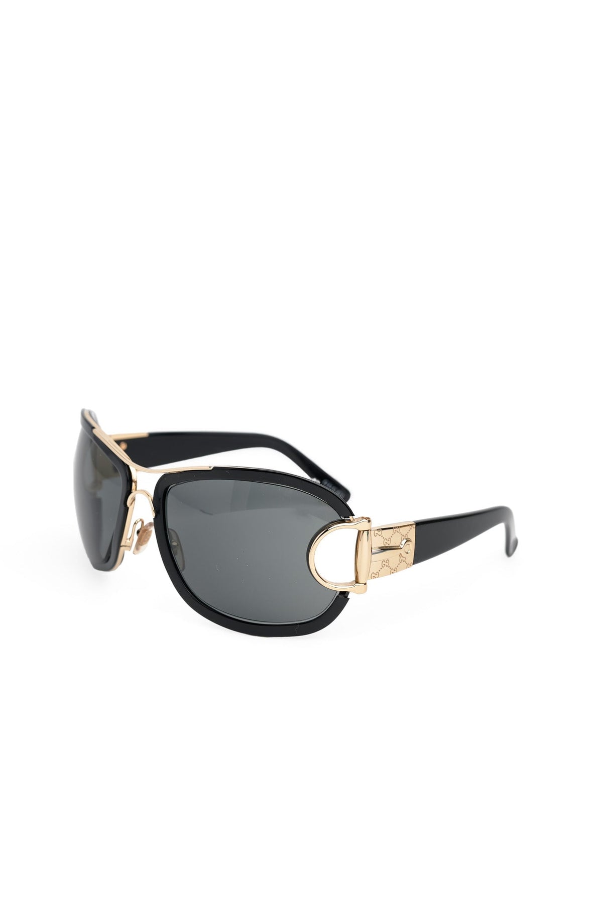 Pre-loved Gucci Oversized Horsebit Sunglasses in black and gold