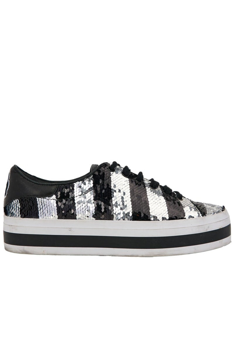 Alice + Olivia Sequin Platform Sneakers in black and silver
