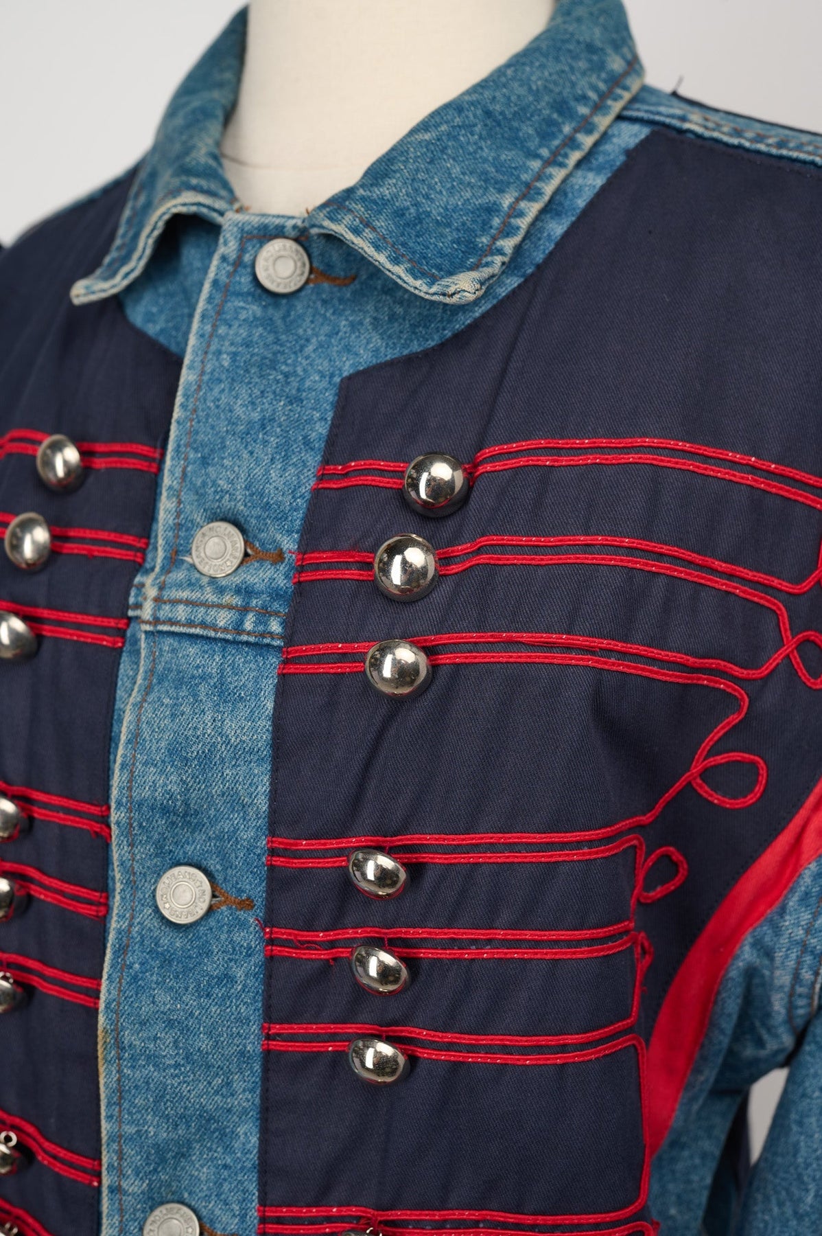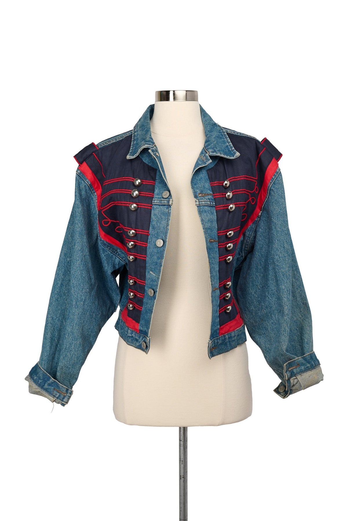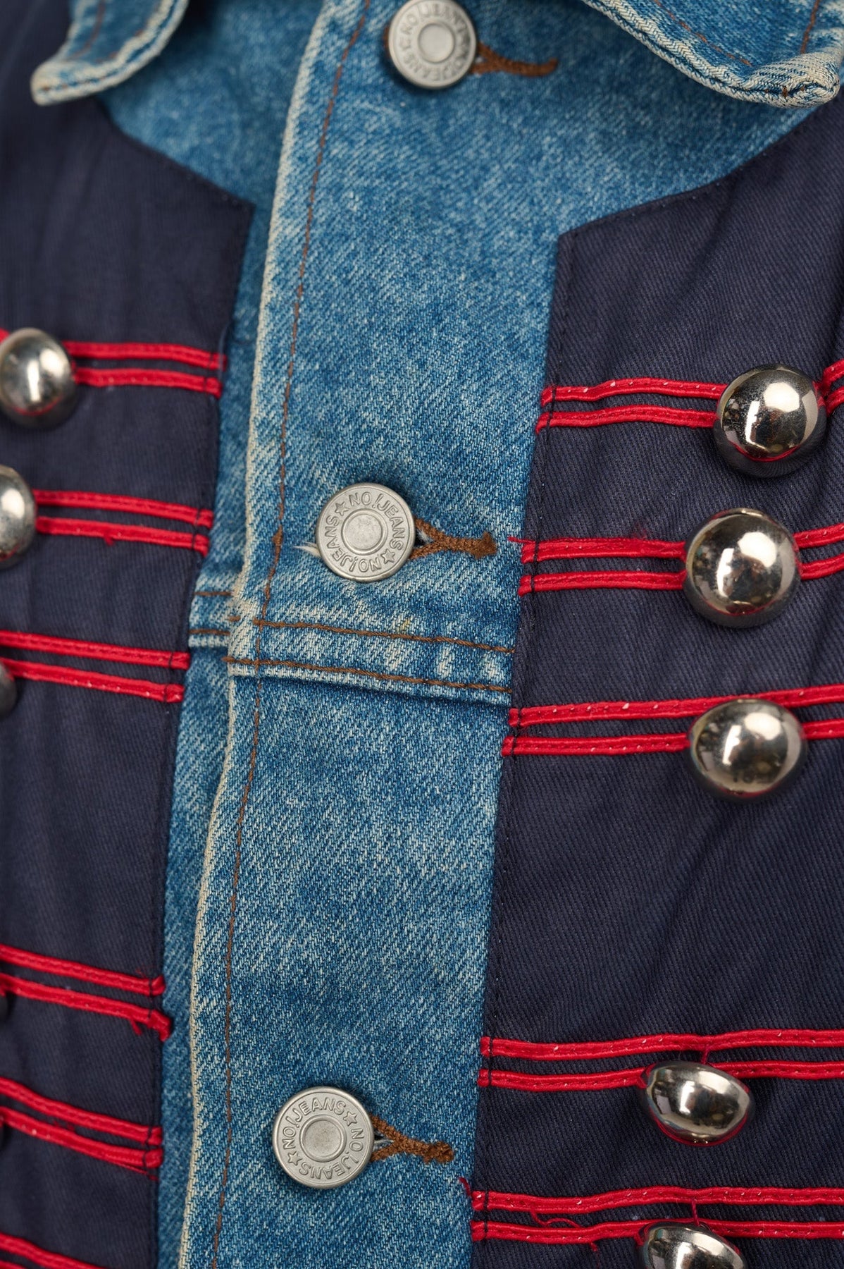 no!jeans Vintage Denim Navy Applique Jacket in navy and red