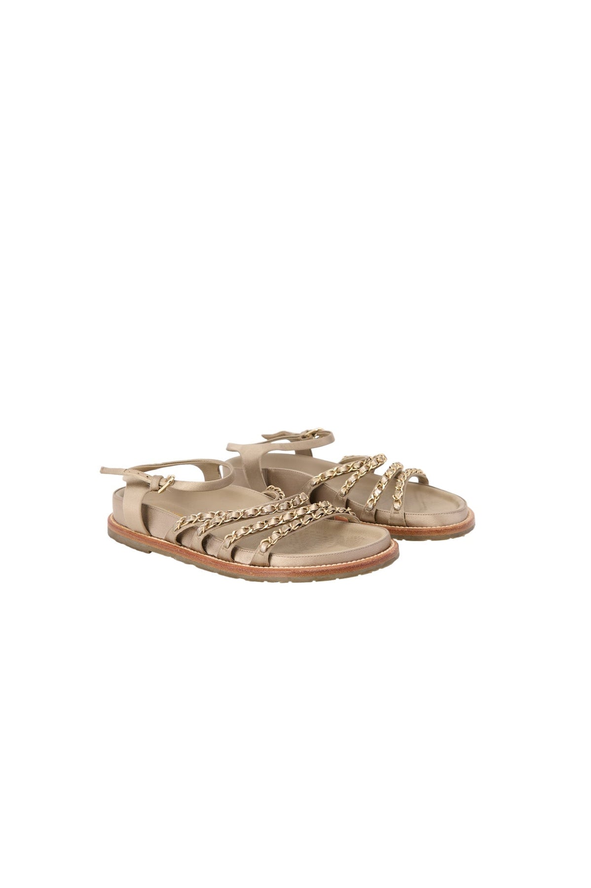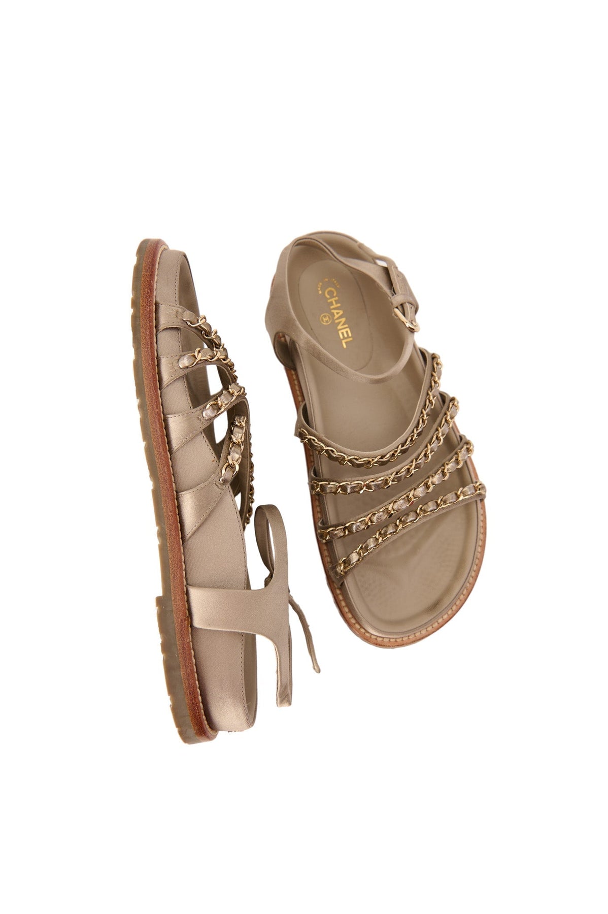 Pre-loved Chanel Chain Sandals in taupe