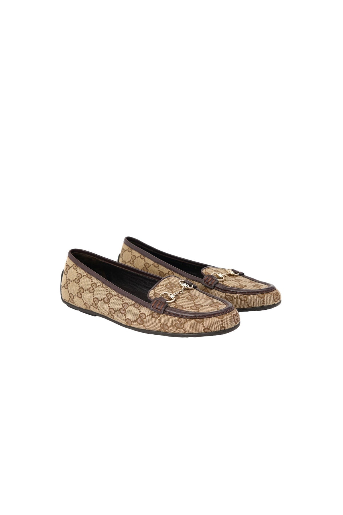 Pre-loved Gucci Monogram Canvas Loafers in brown