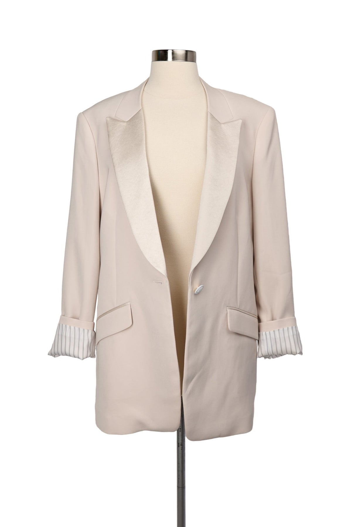 Contents: 50% triacetate, 50% polyester body, 80% acetate, 20% polyester combo, 75% cotton, 25% polyamide body lining, 100% polyester sleeve lining