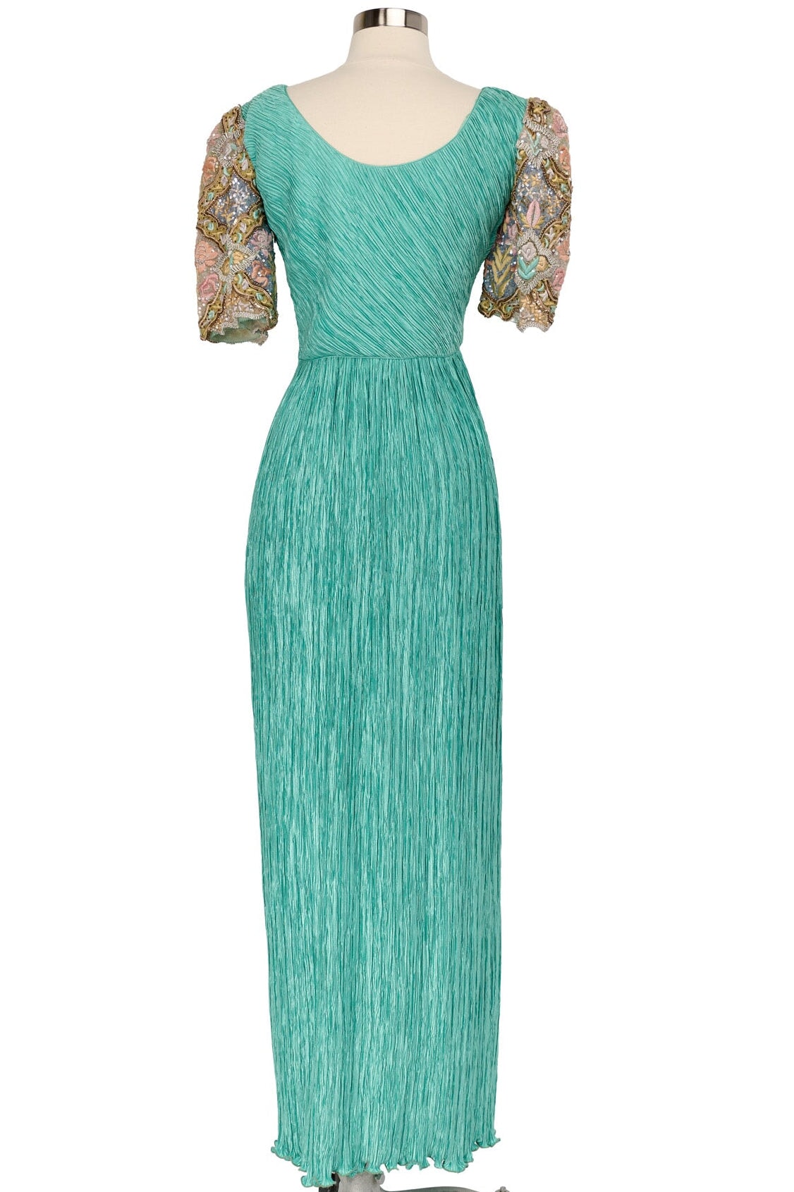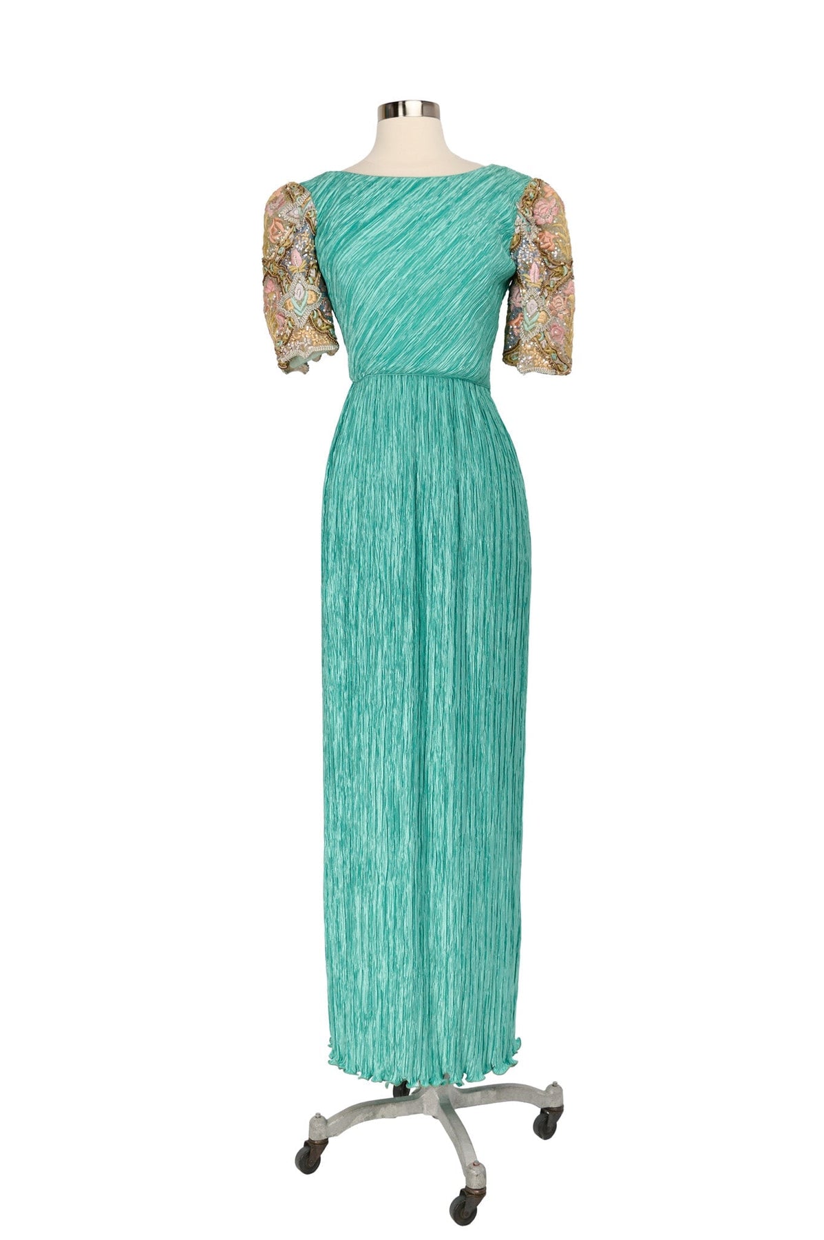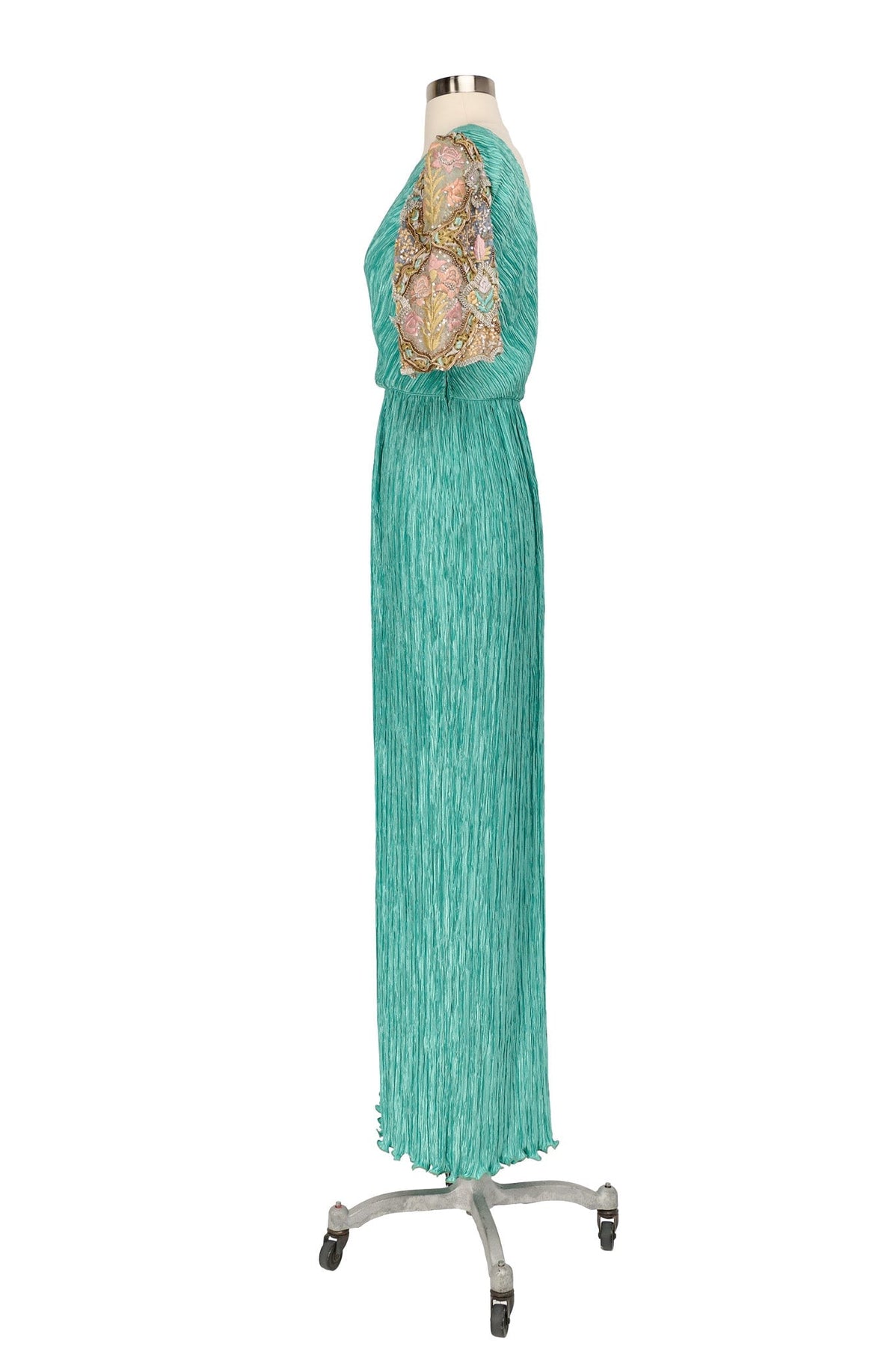 Vintage Mary McFadden Embellished Plisse Gown in sea foam
