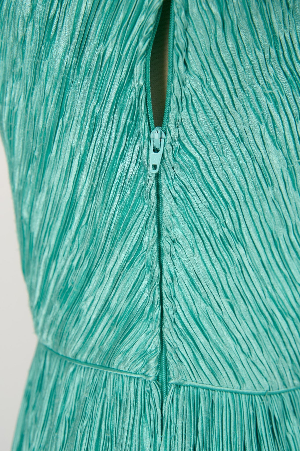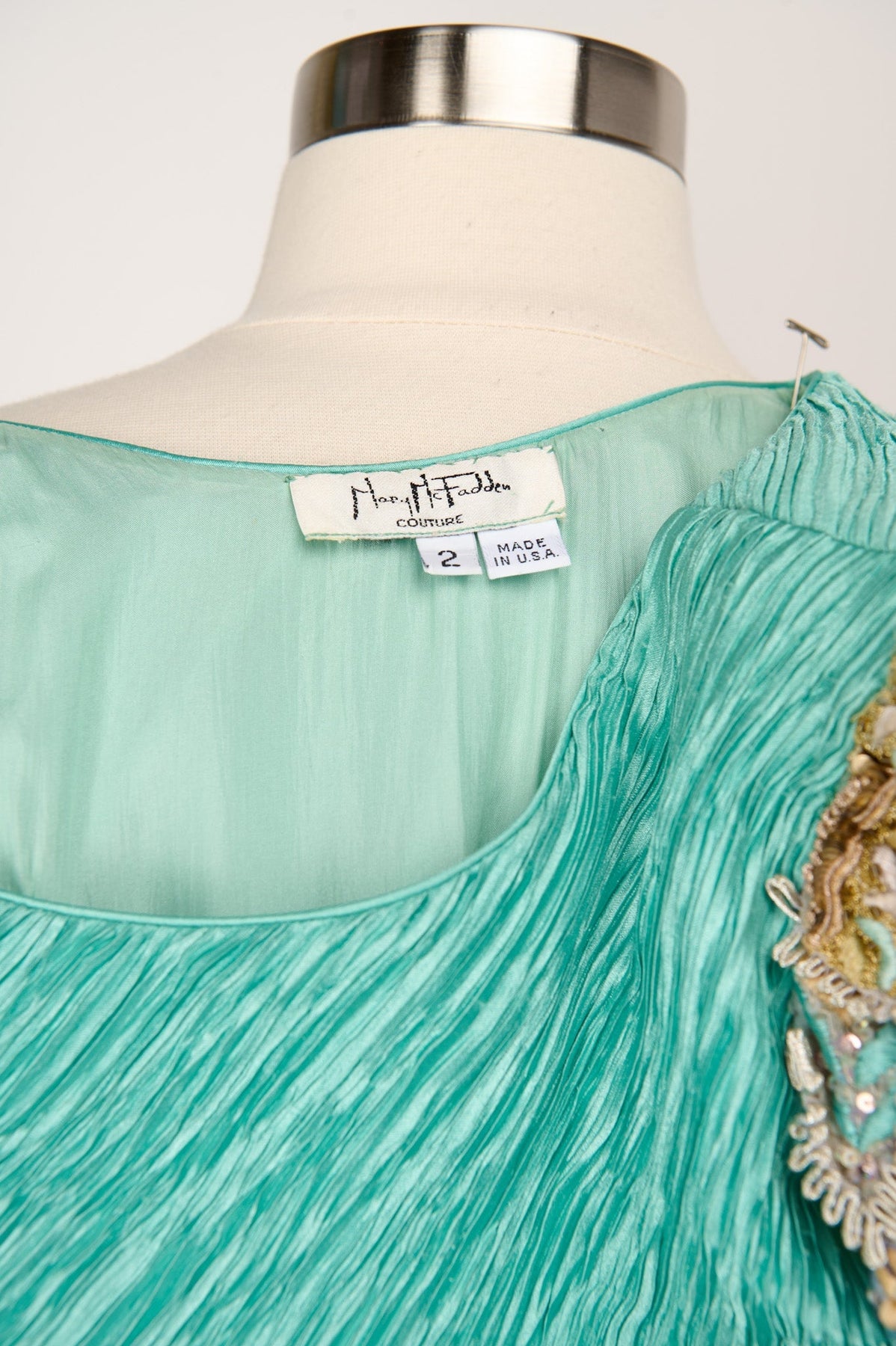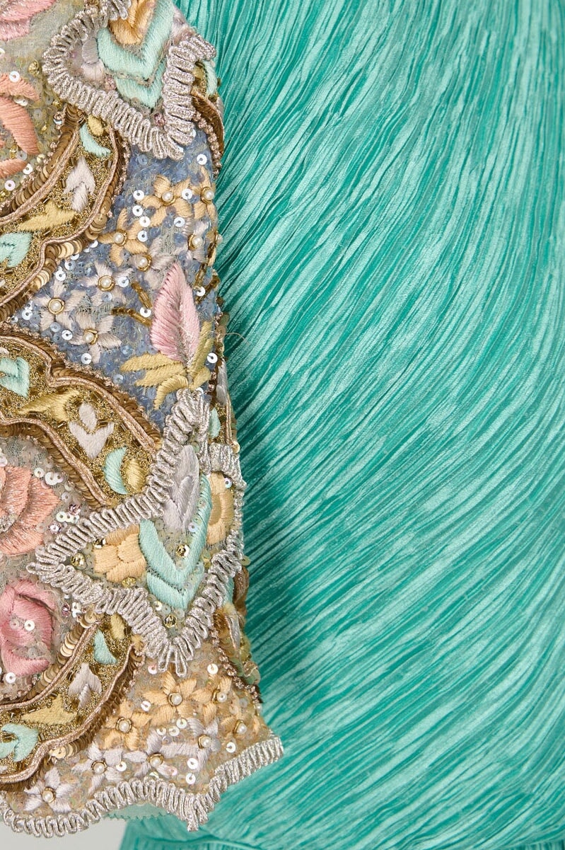 Vintage Mary McFadden Embellished Plisse Gown in sea foam