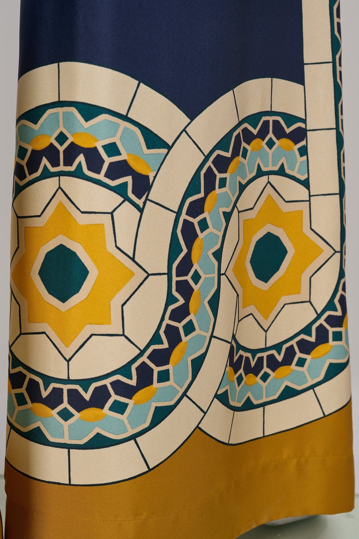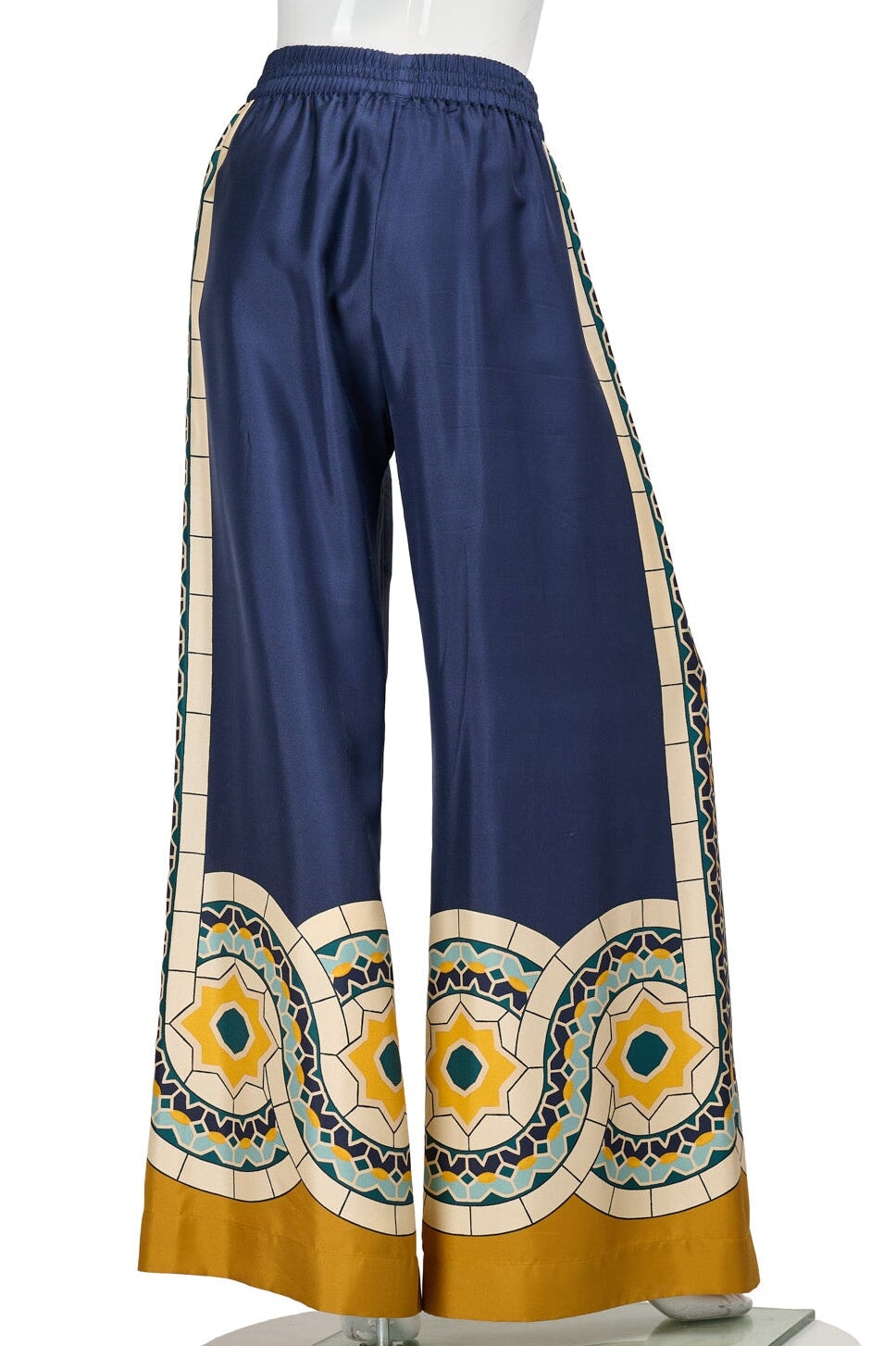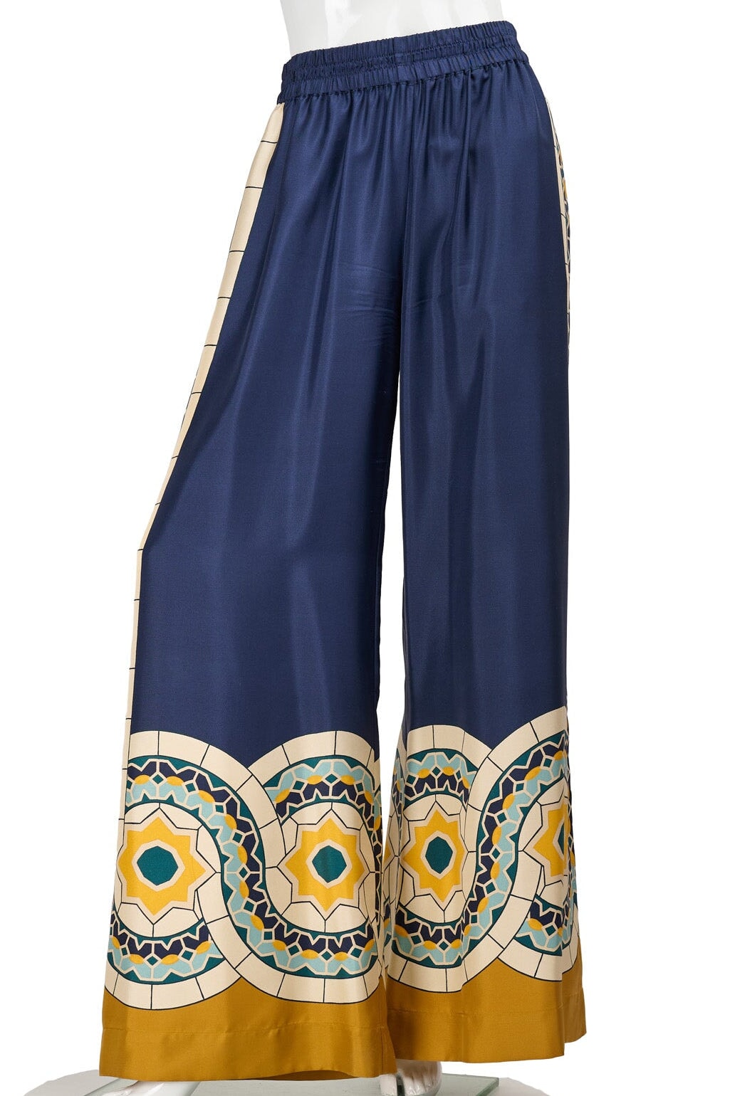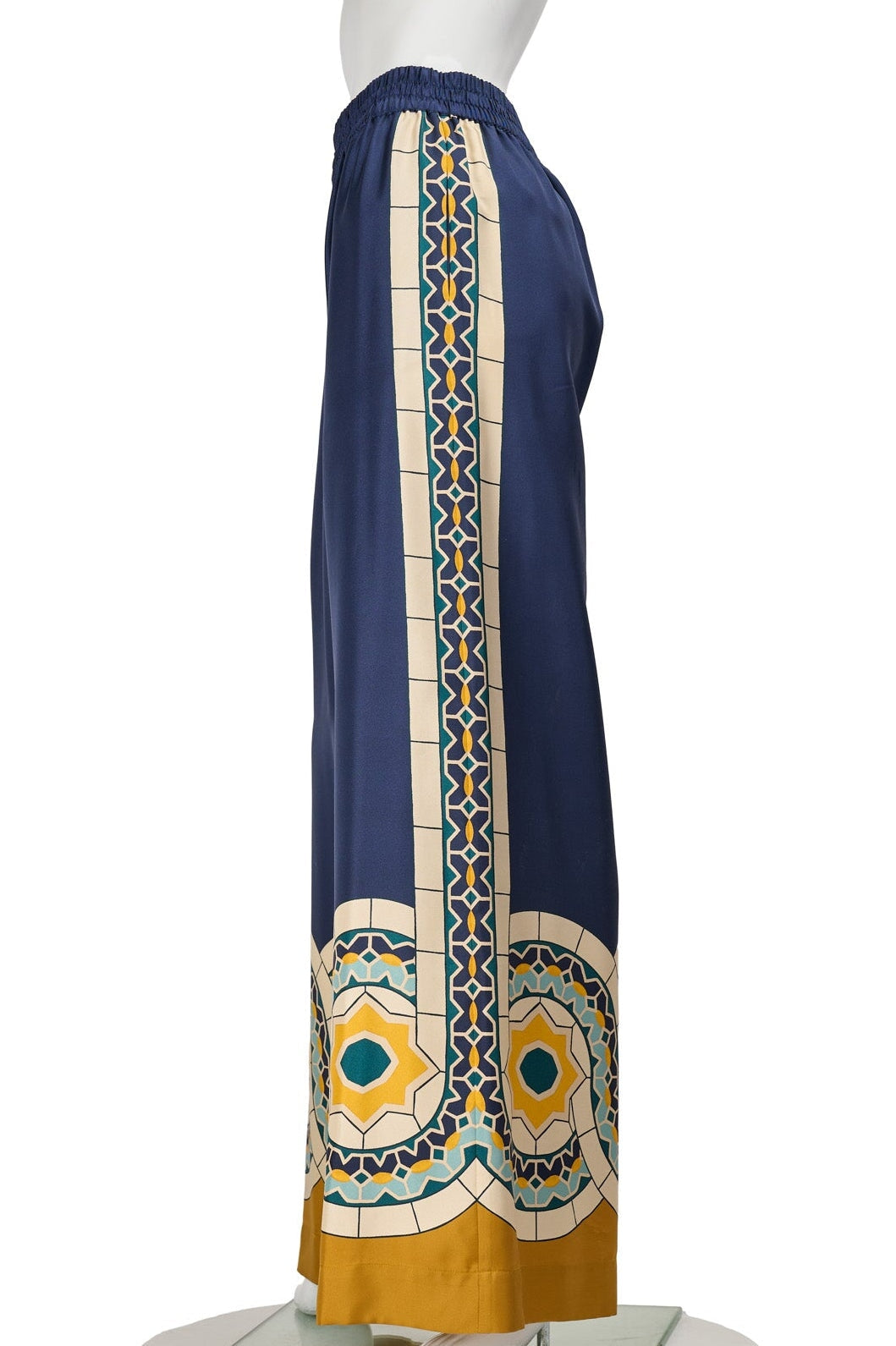 La DoubleJ Silk Twill Palazzo Pants in navy, cream, and mustard