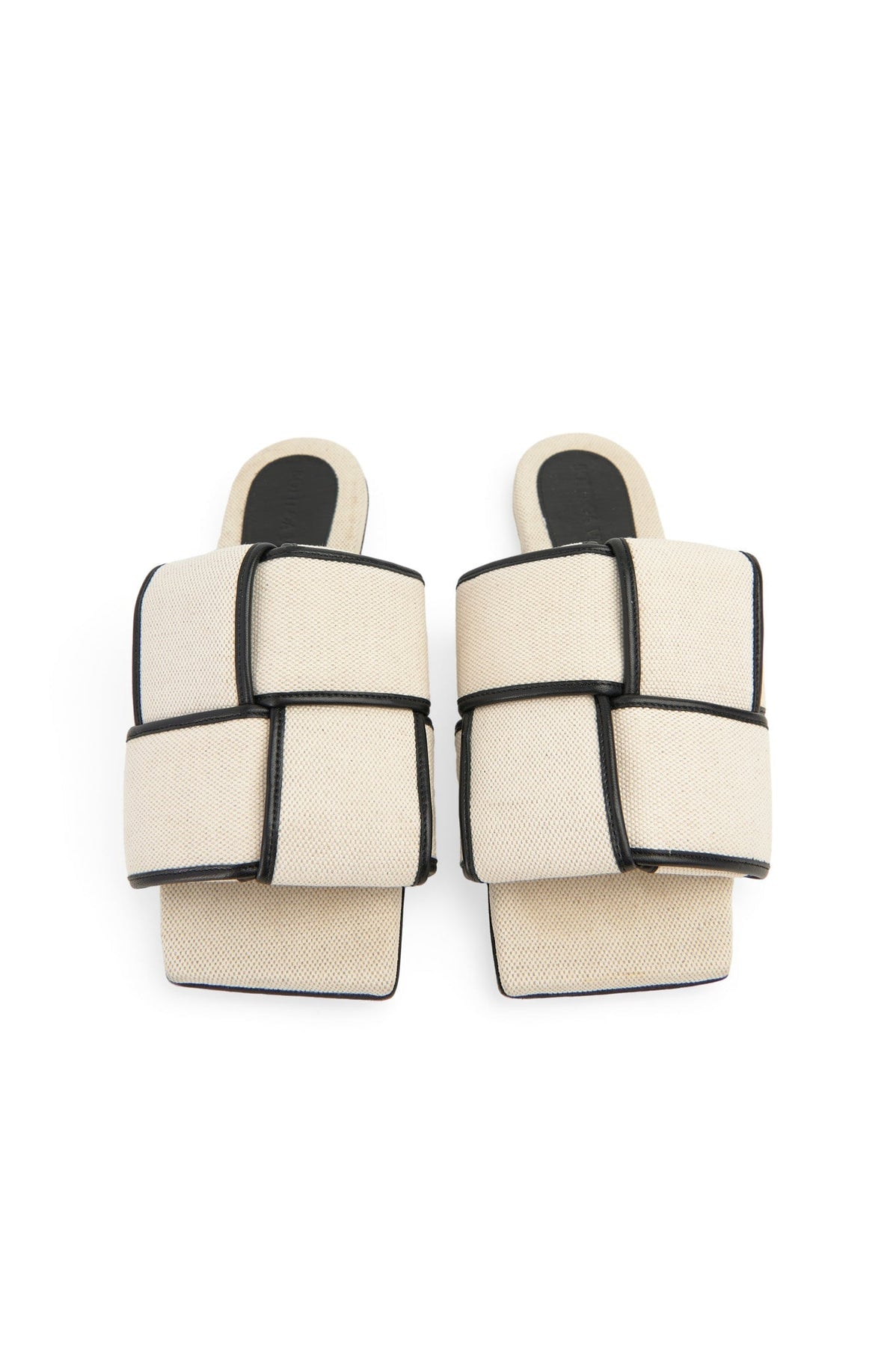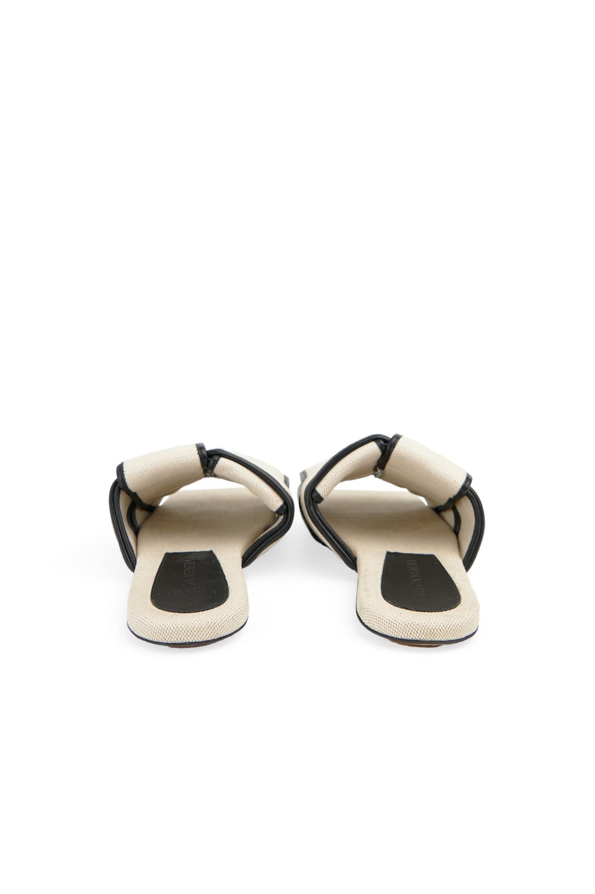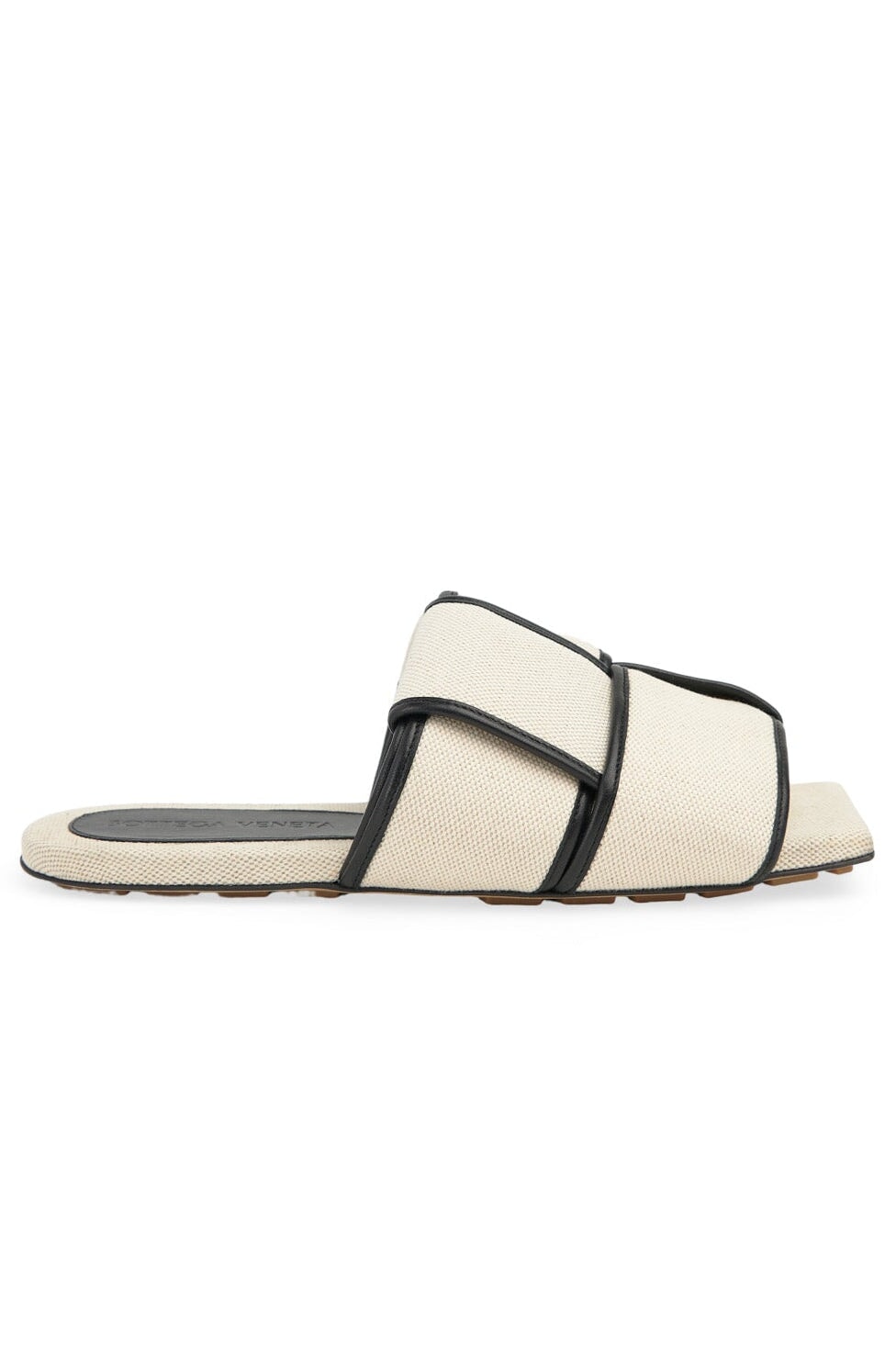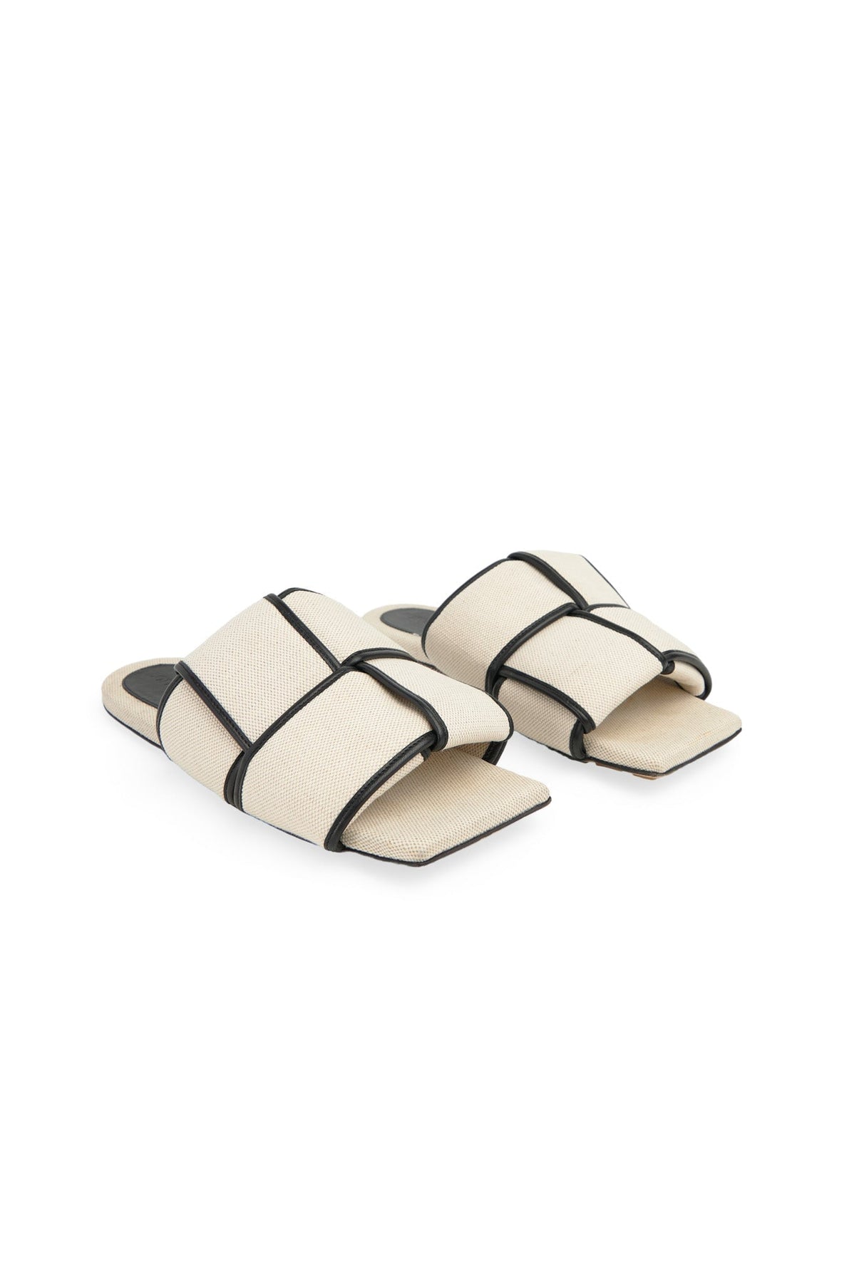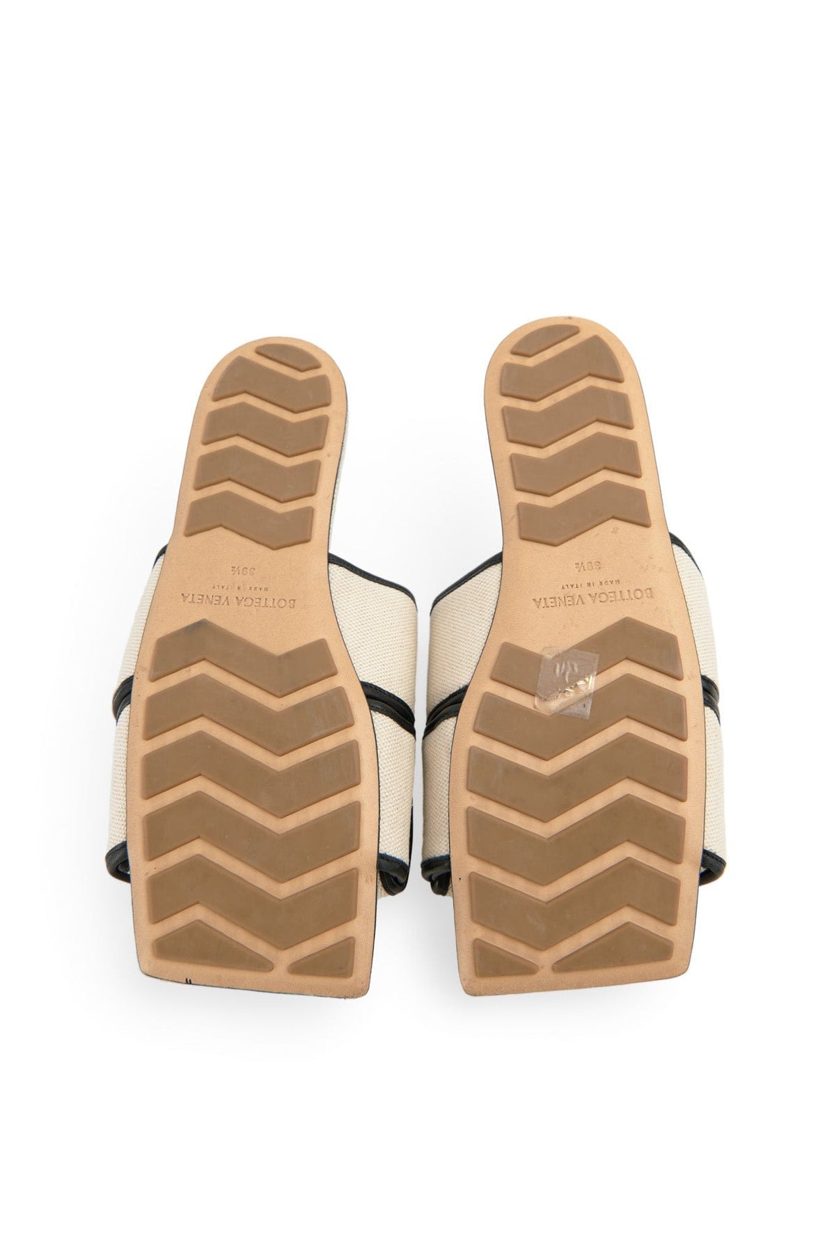 Bottega Veneta Canvas Patch Mule Flat Sandals in black and cream