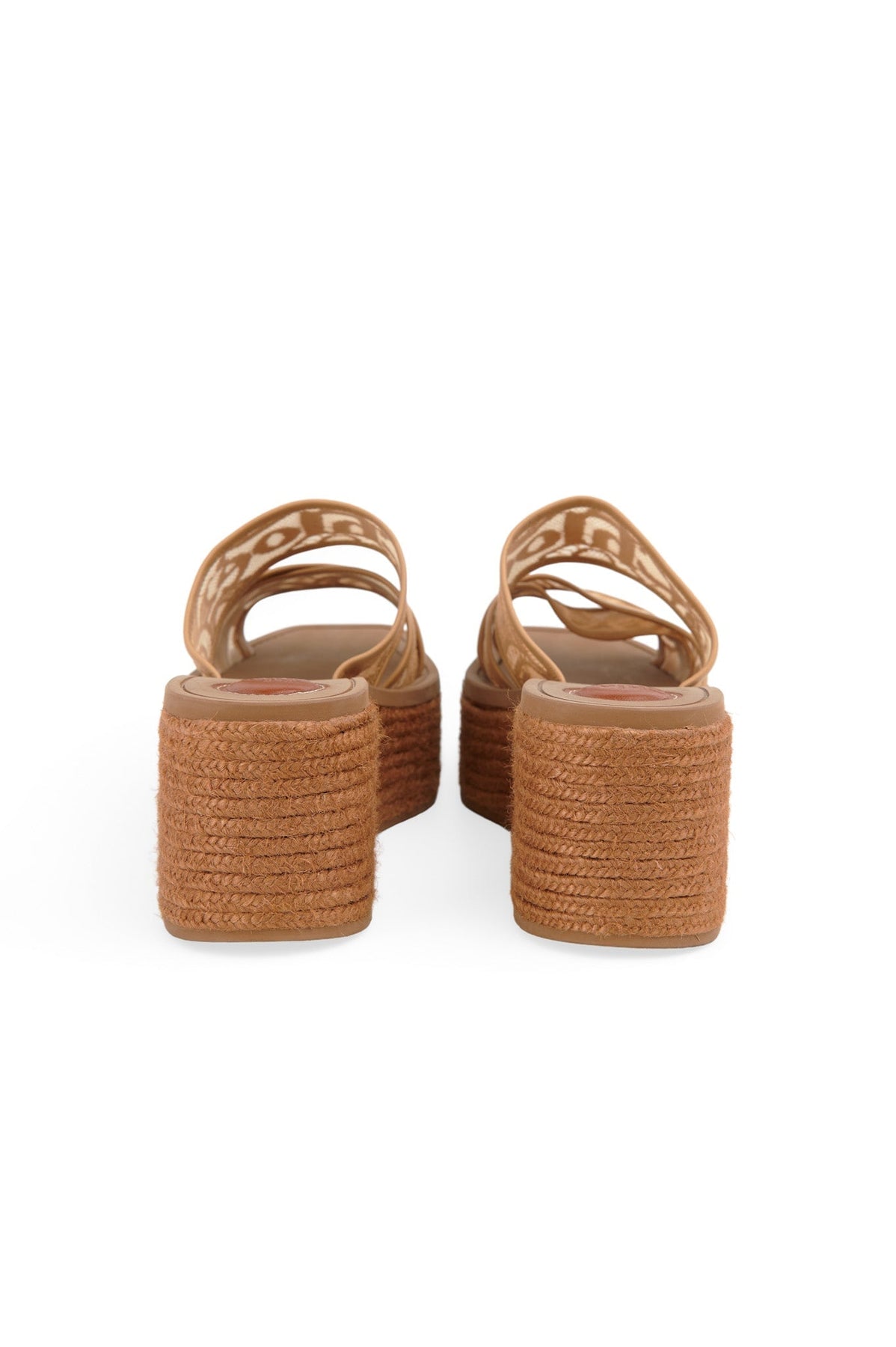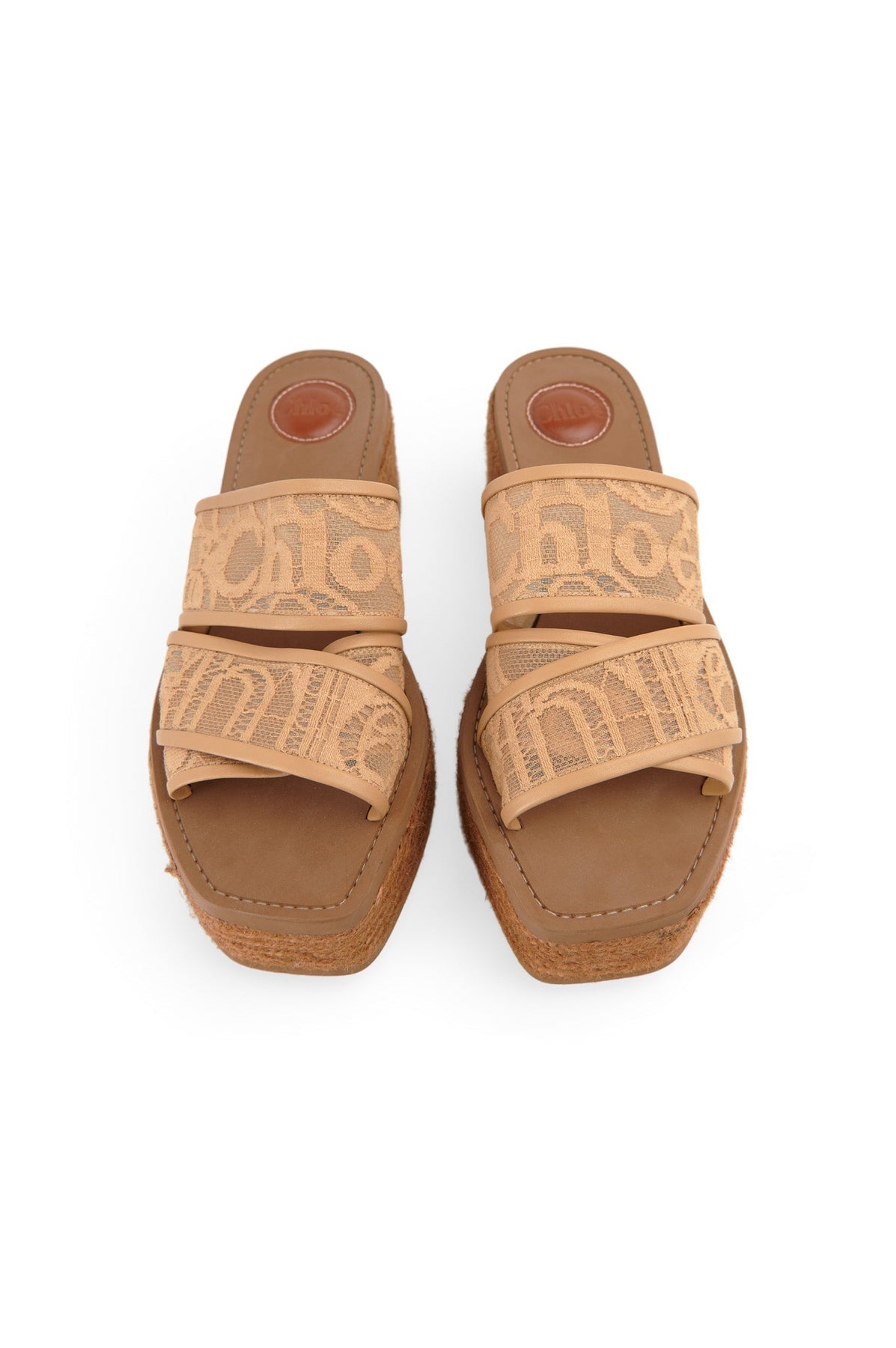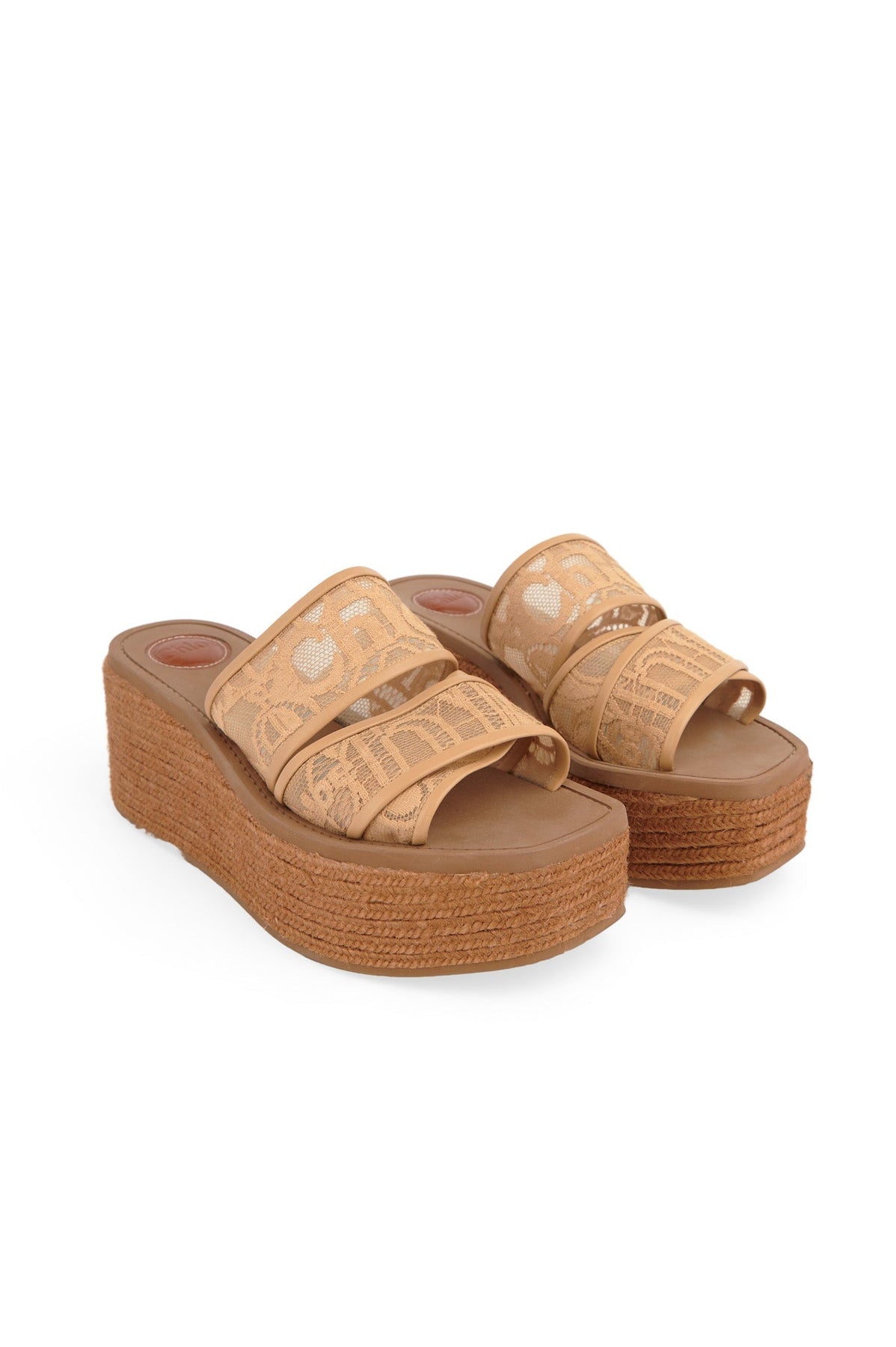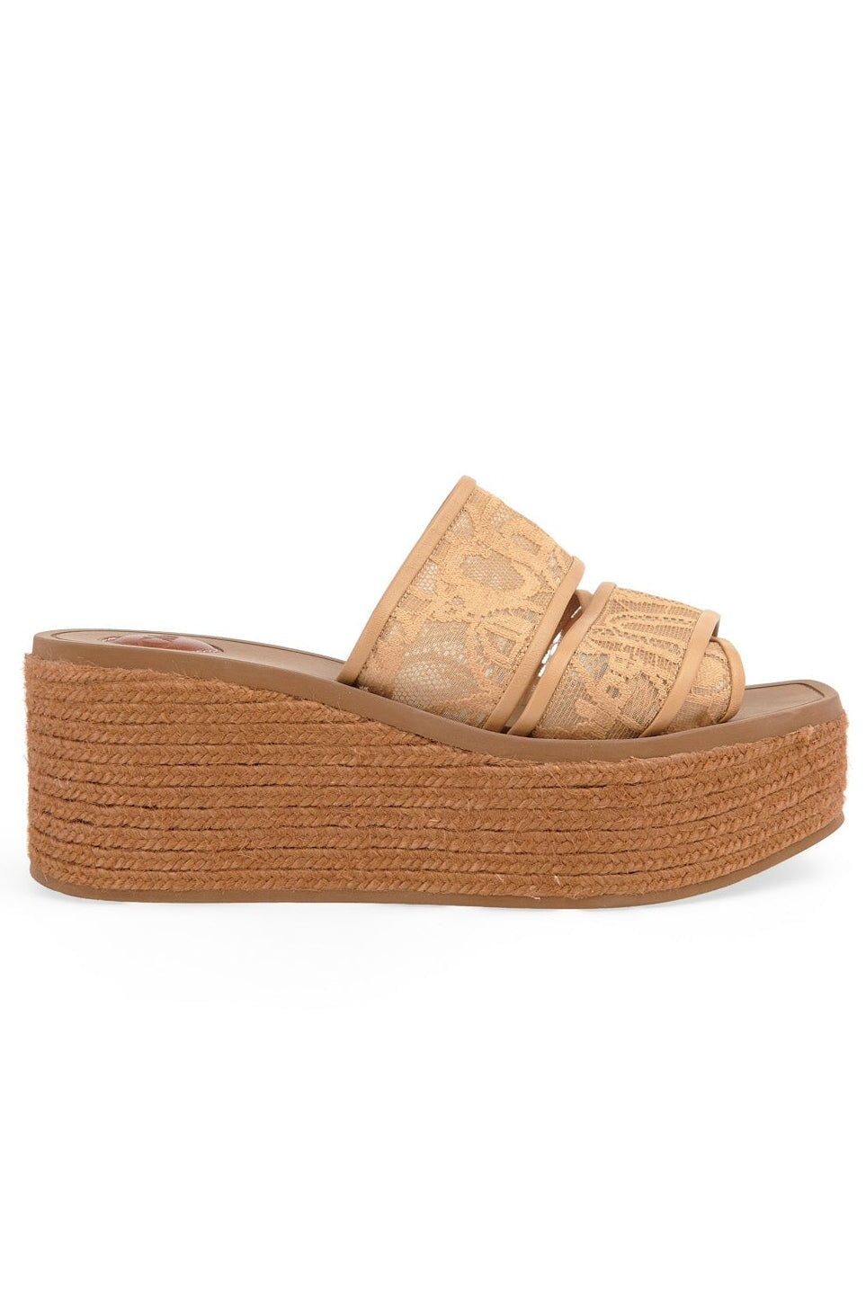Chloe Crochet Lace Espadrille Platform Sandals in tan
