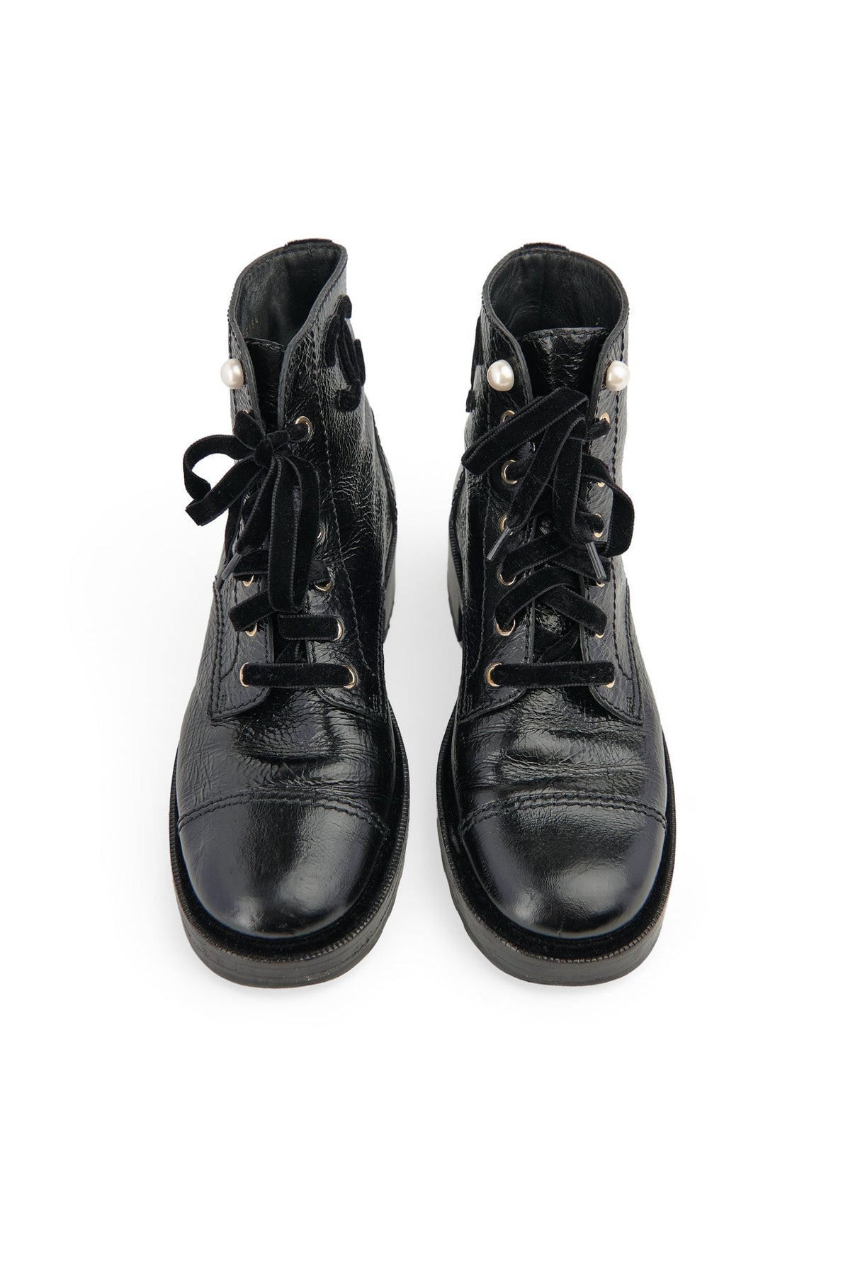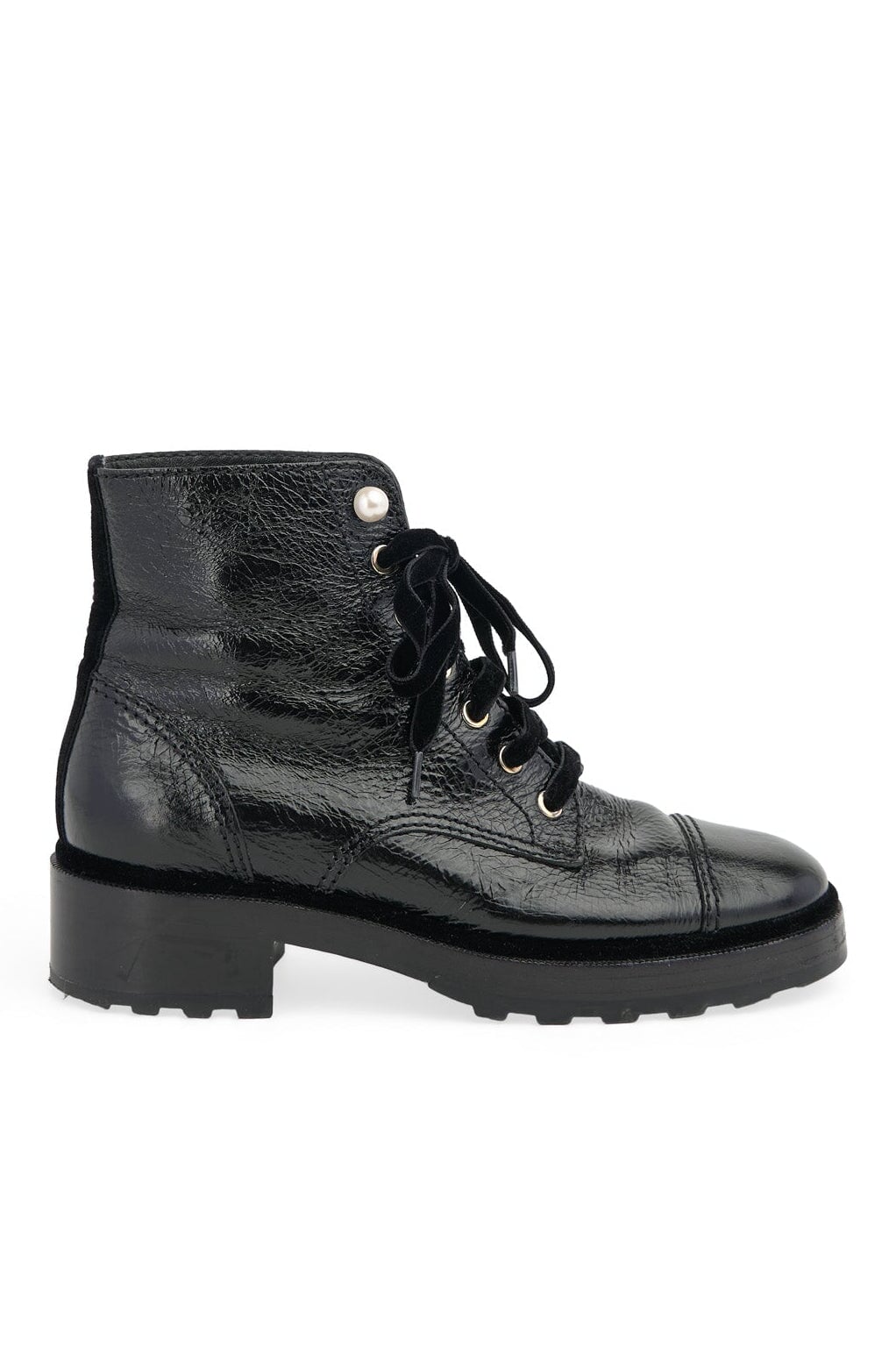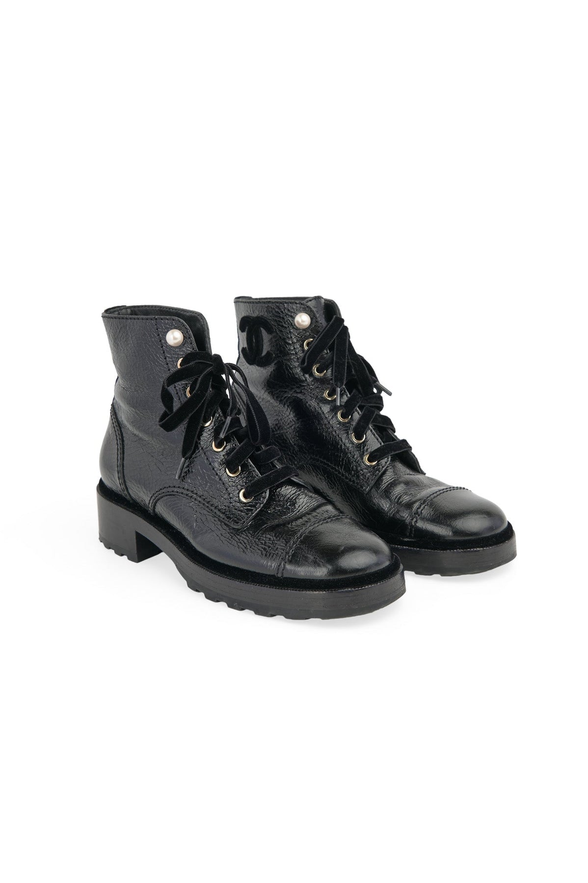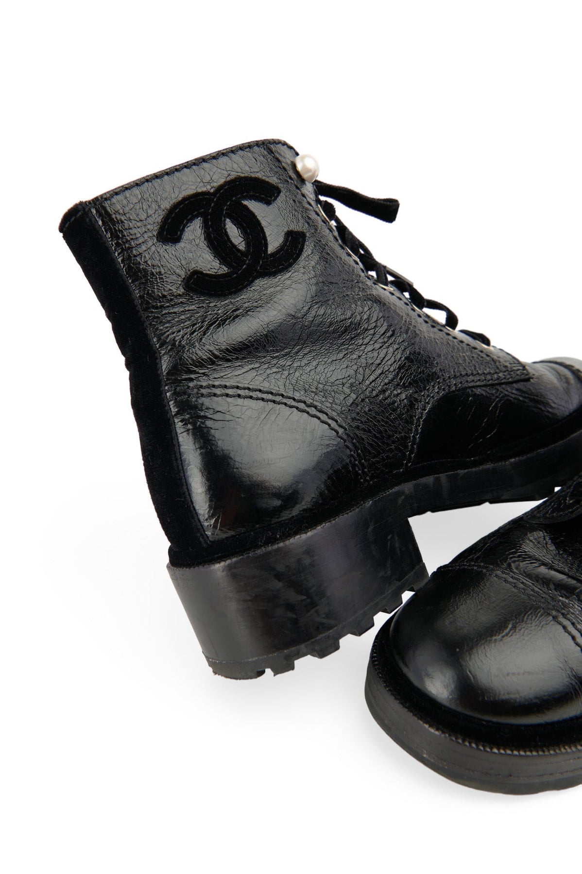 Pre-loved Chanel 2019 Crinkle Leather Boots in black