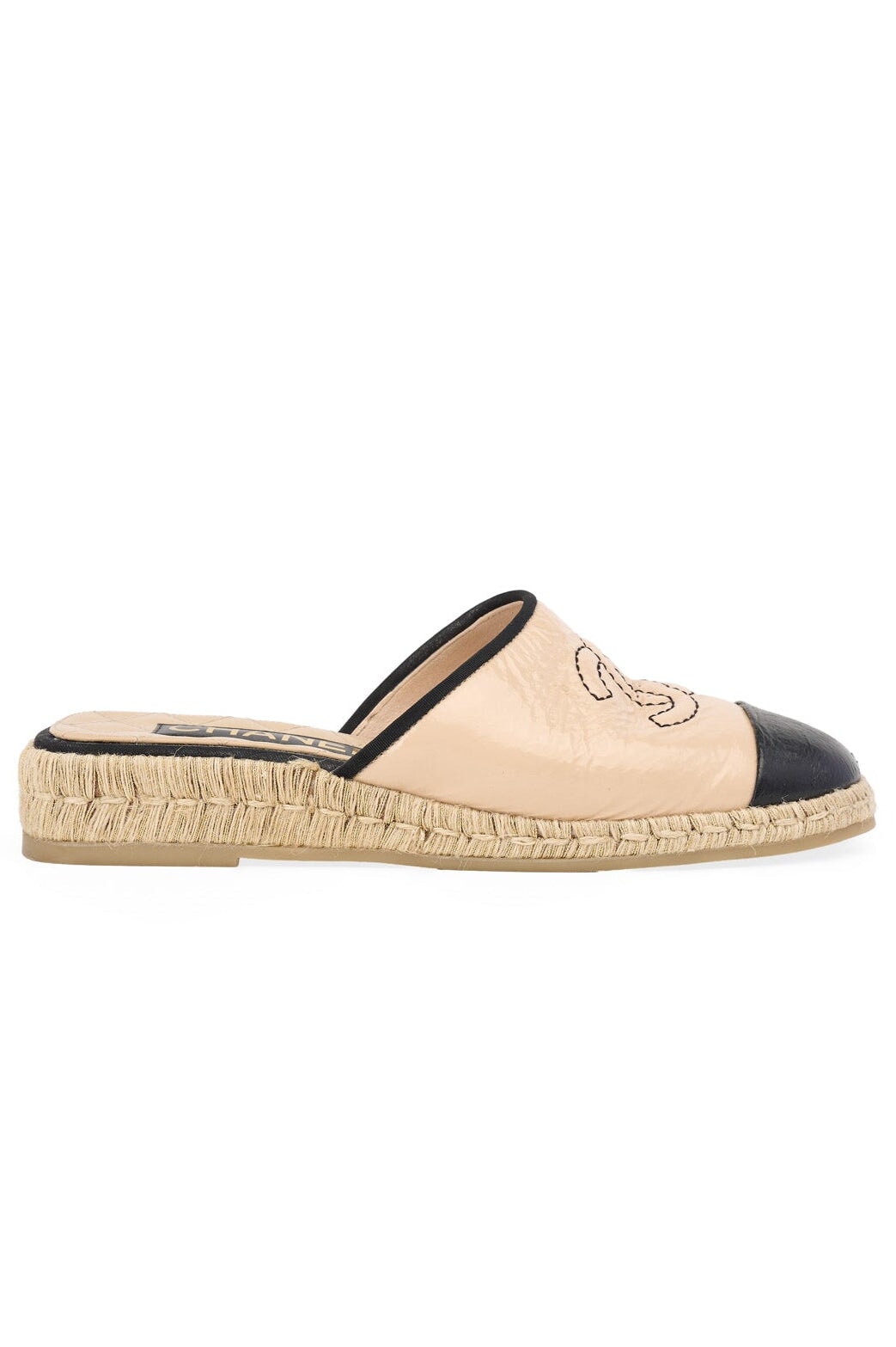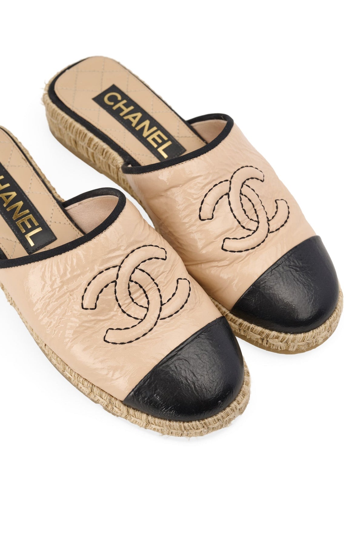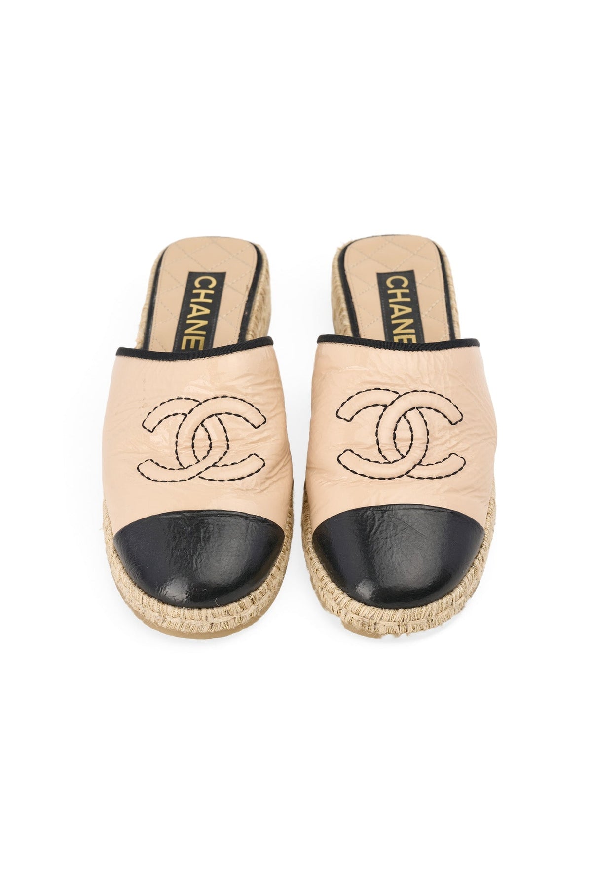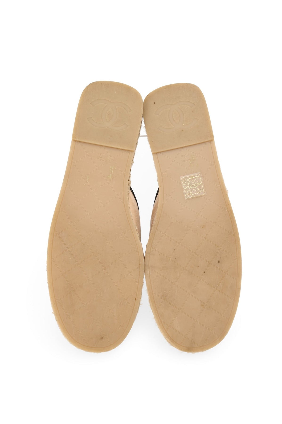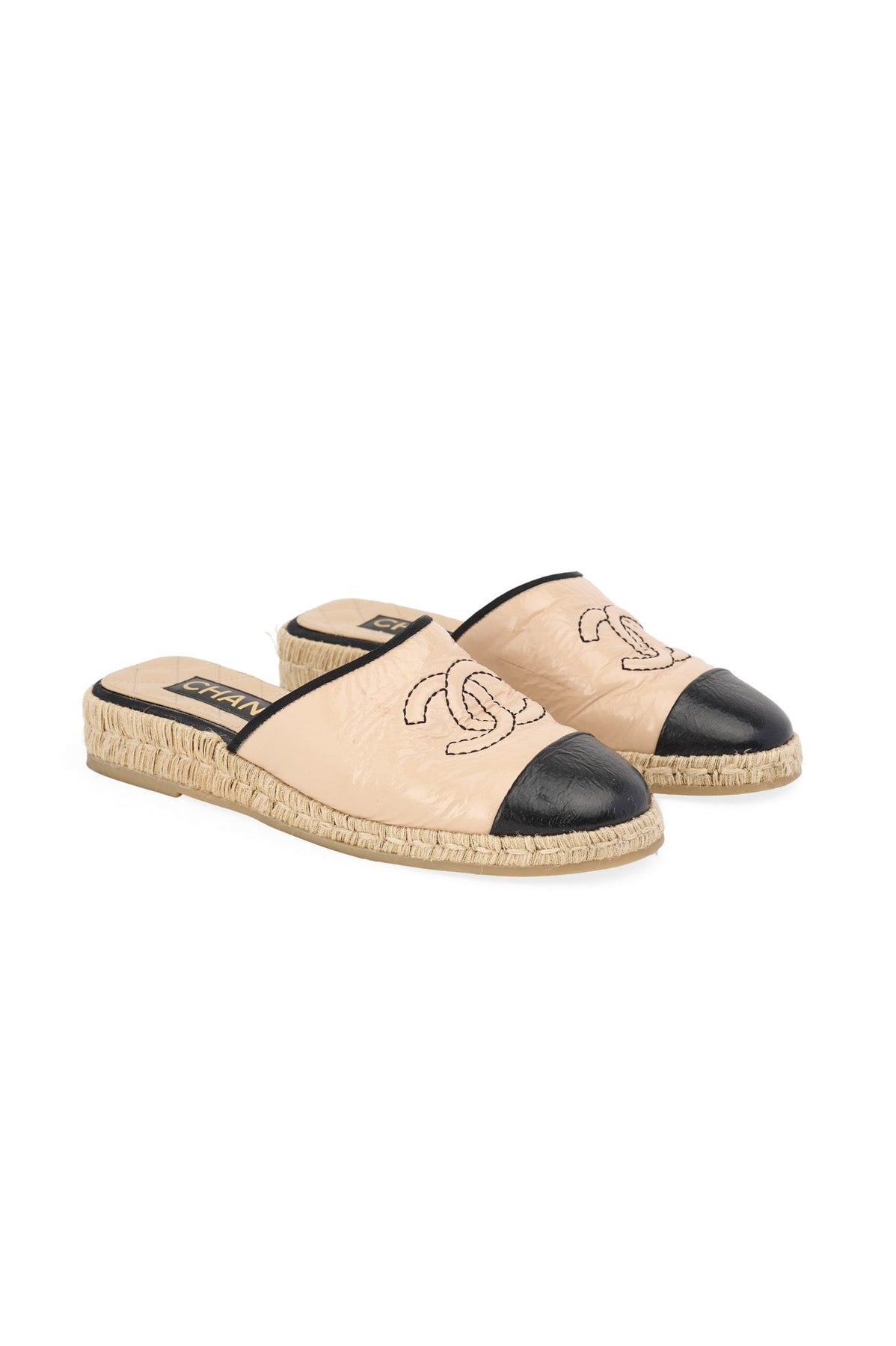 Pre-loved Chanel 2023 Espadrille Mules in black and beige
