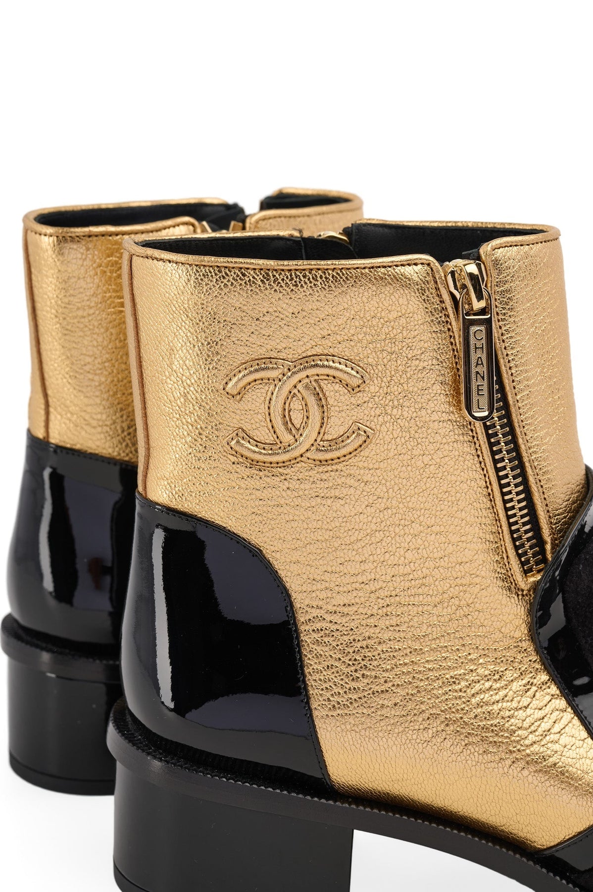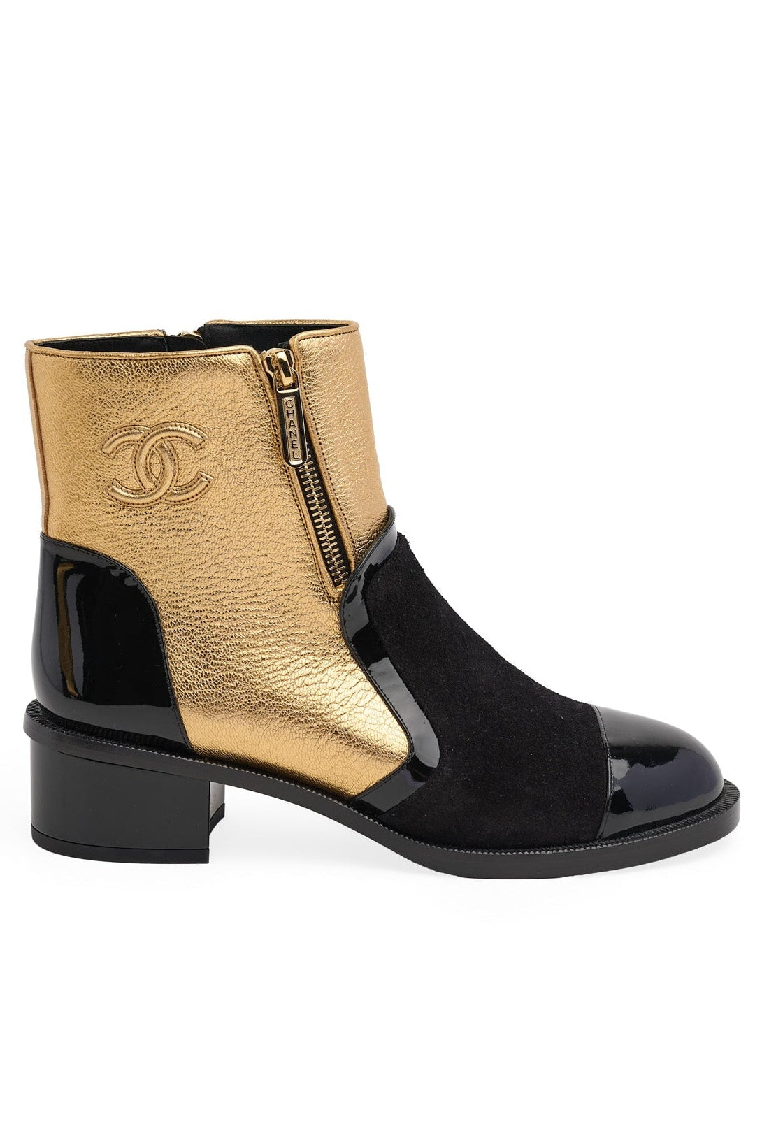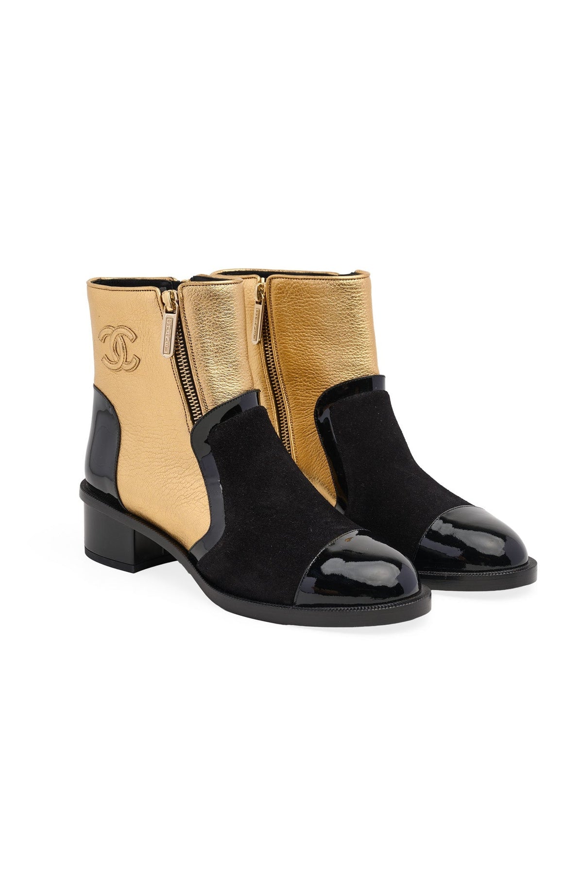 Pre-loved Chanel Ankle Booties in black and gold