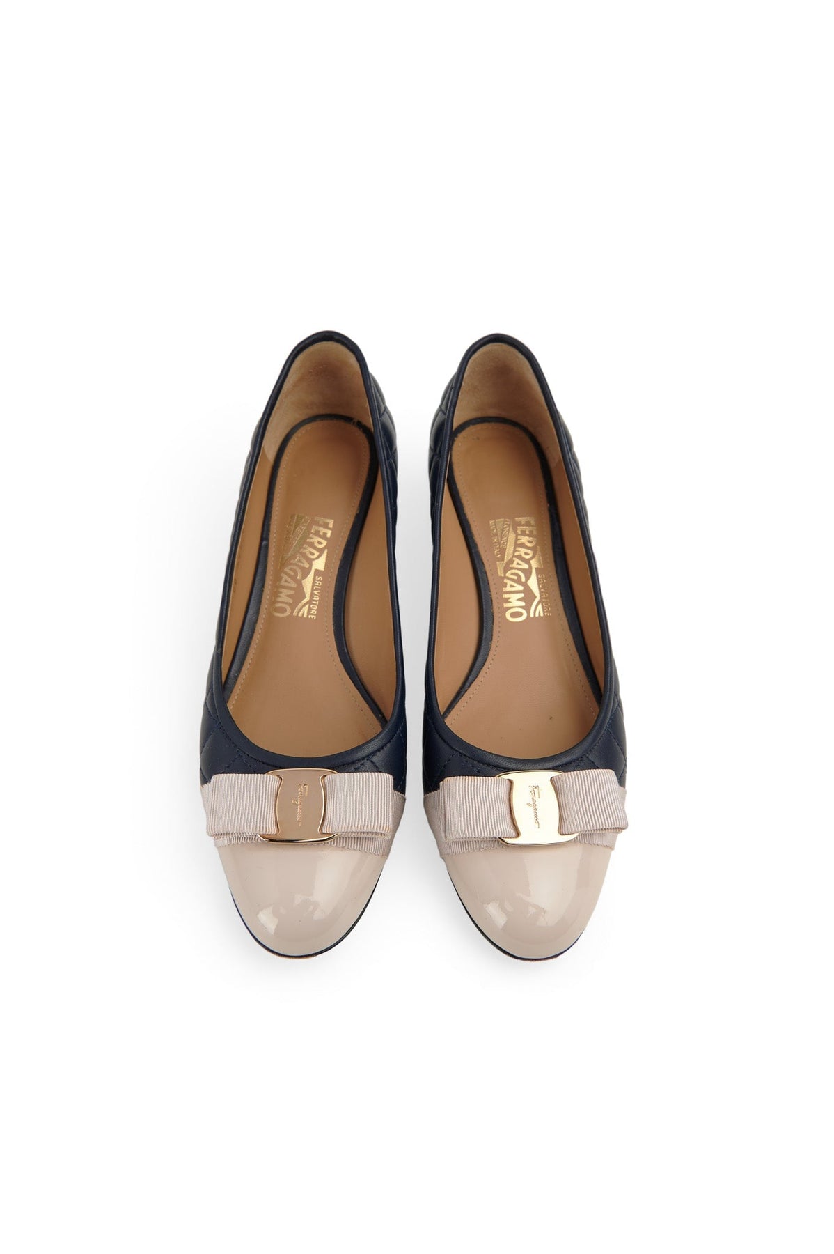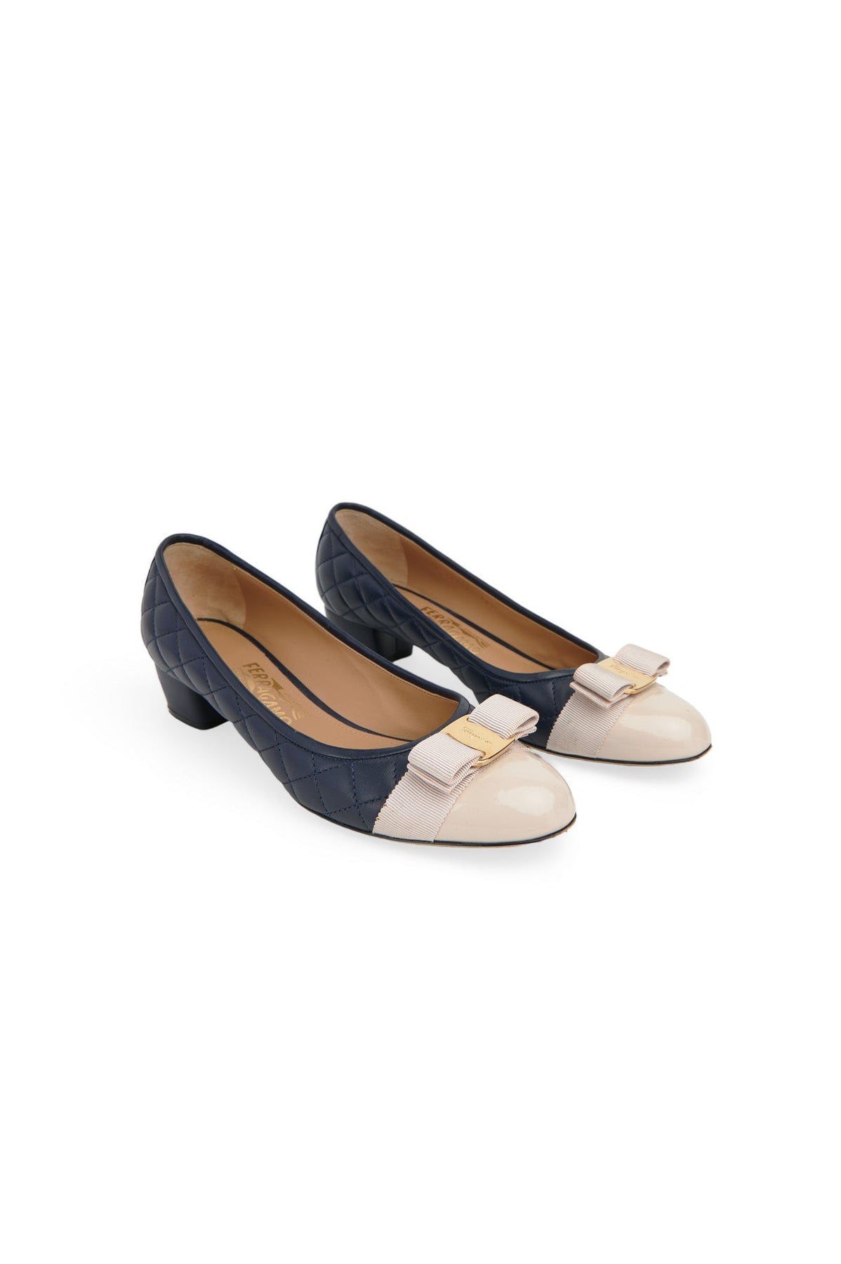 Salvatore Ferragamo Vara Pumps in hunter navy and blush