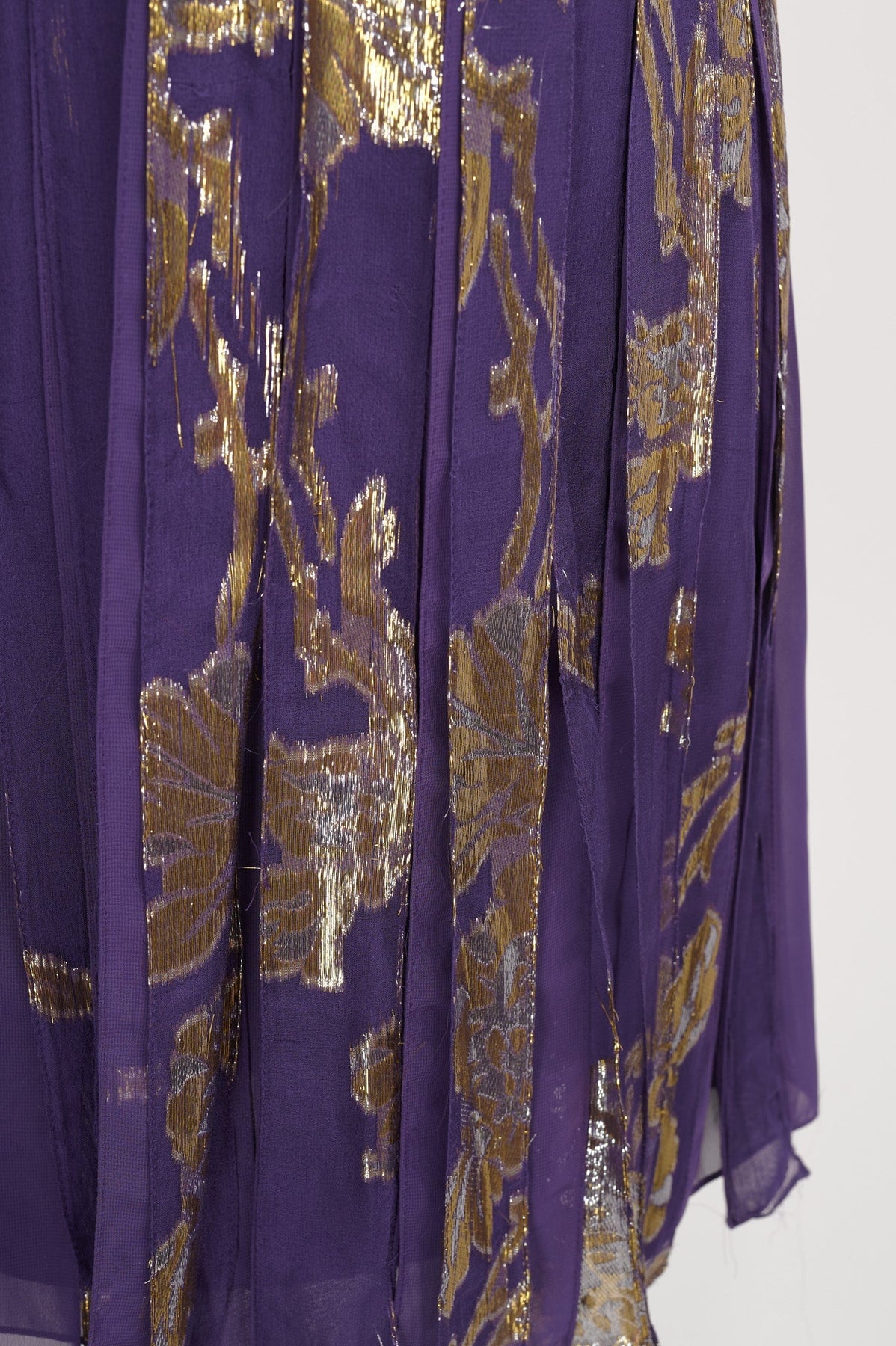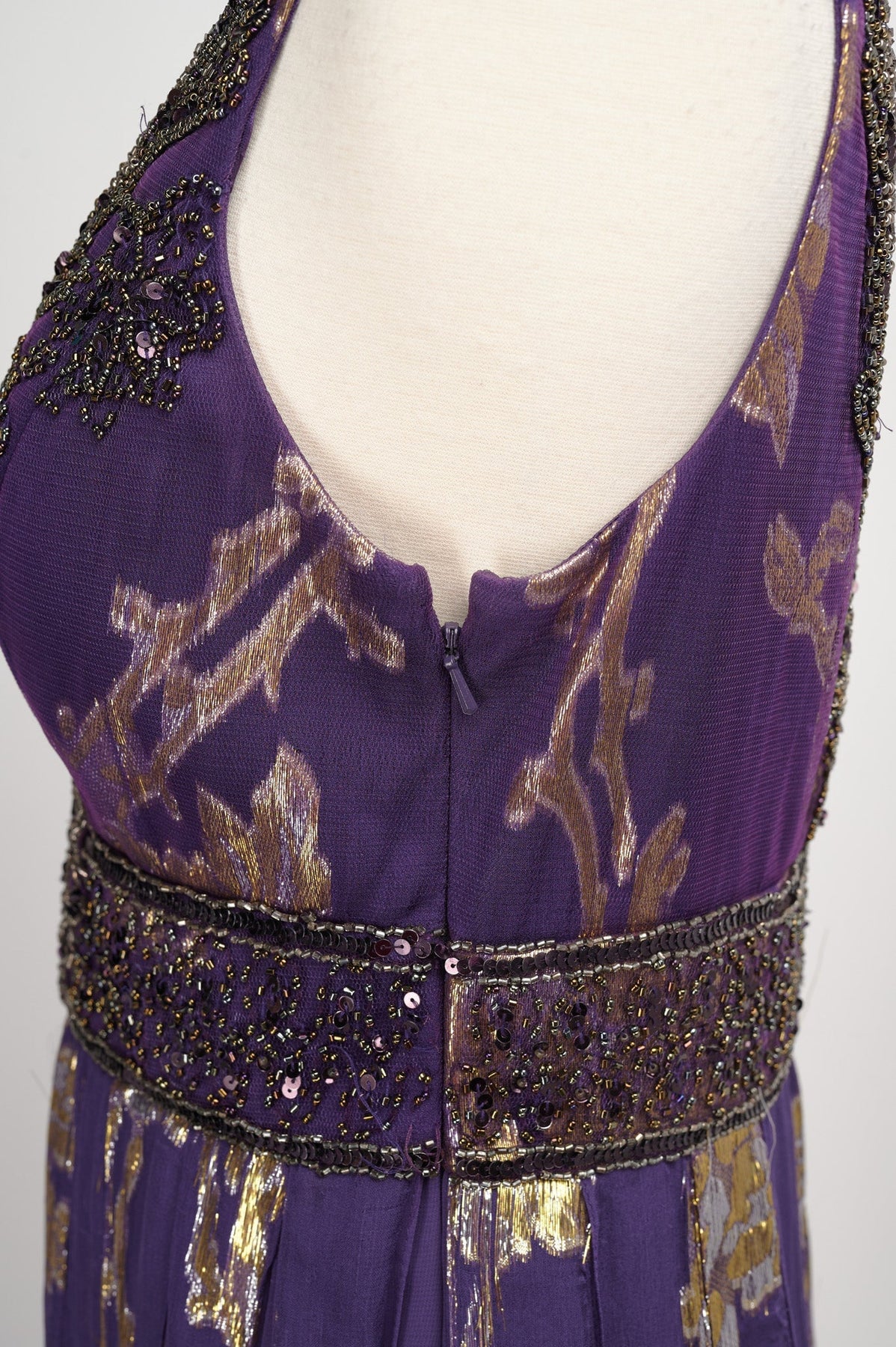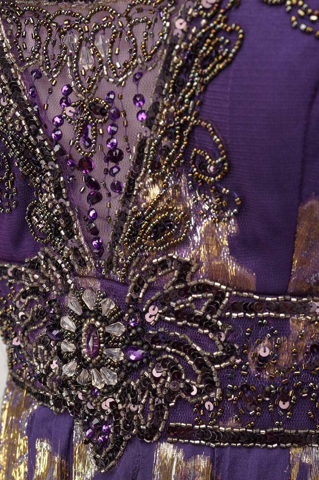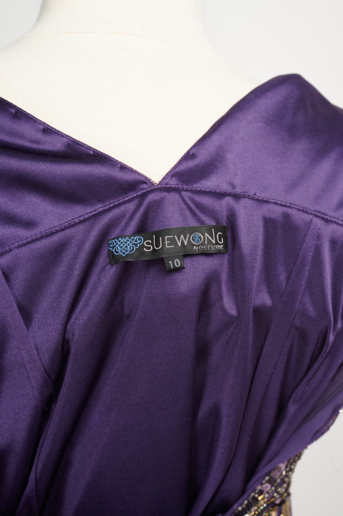Early 2000s Sue Wong Chiffon Car Wash Dress in purple and gold