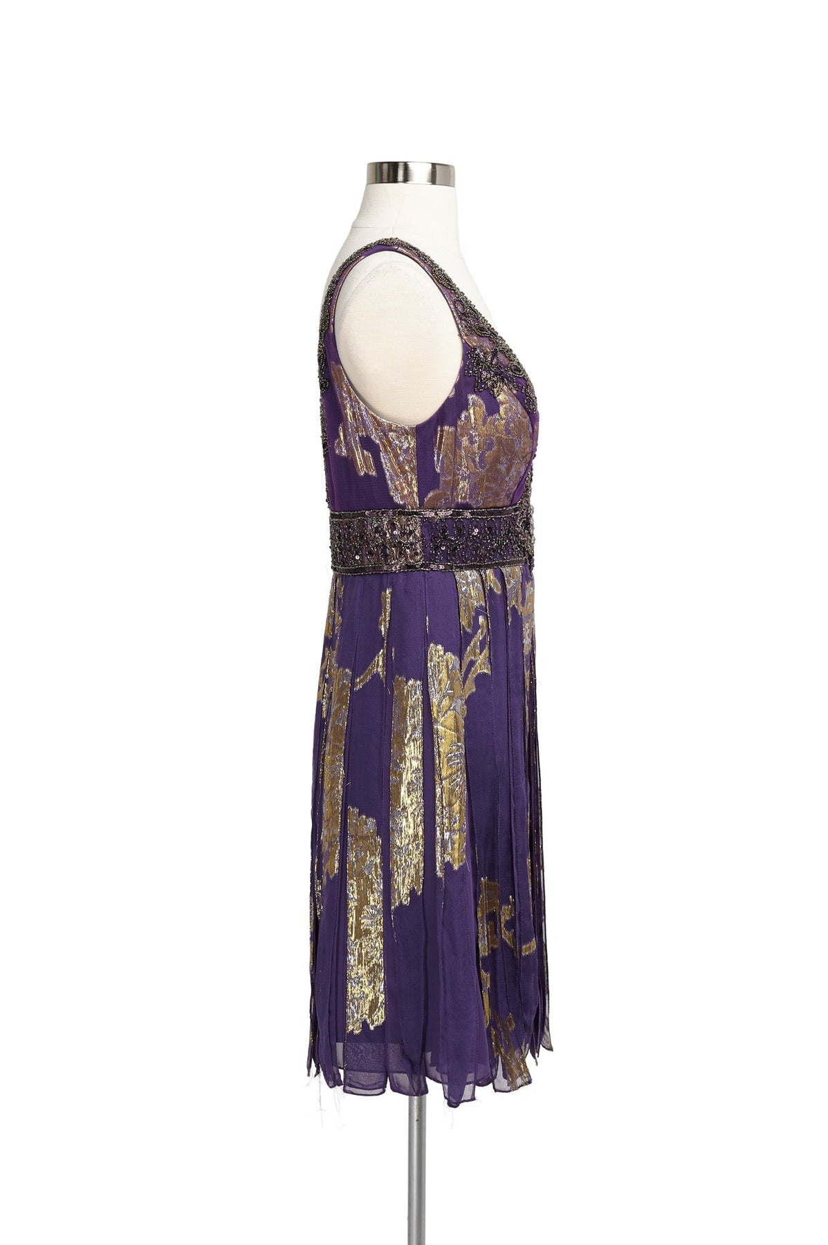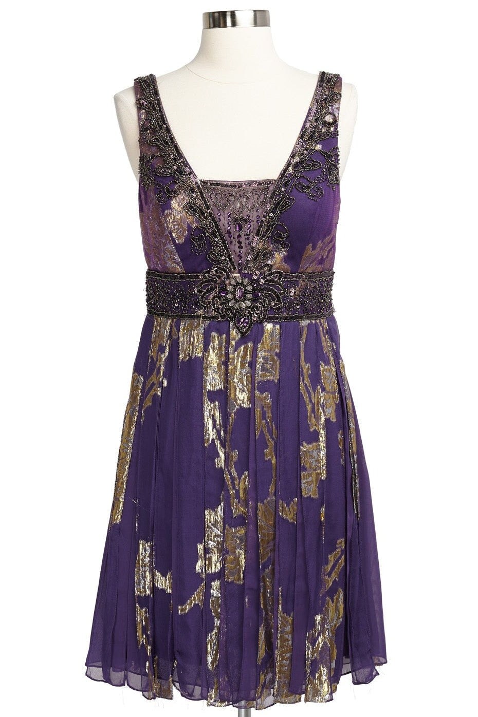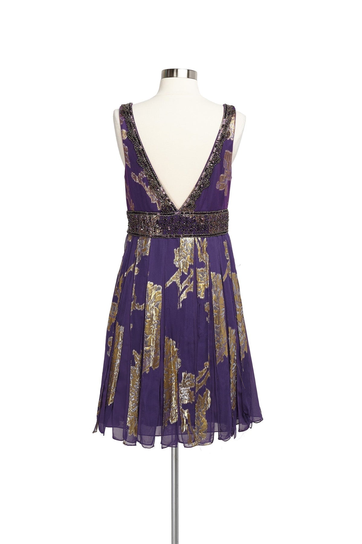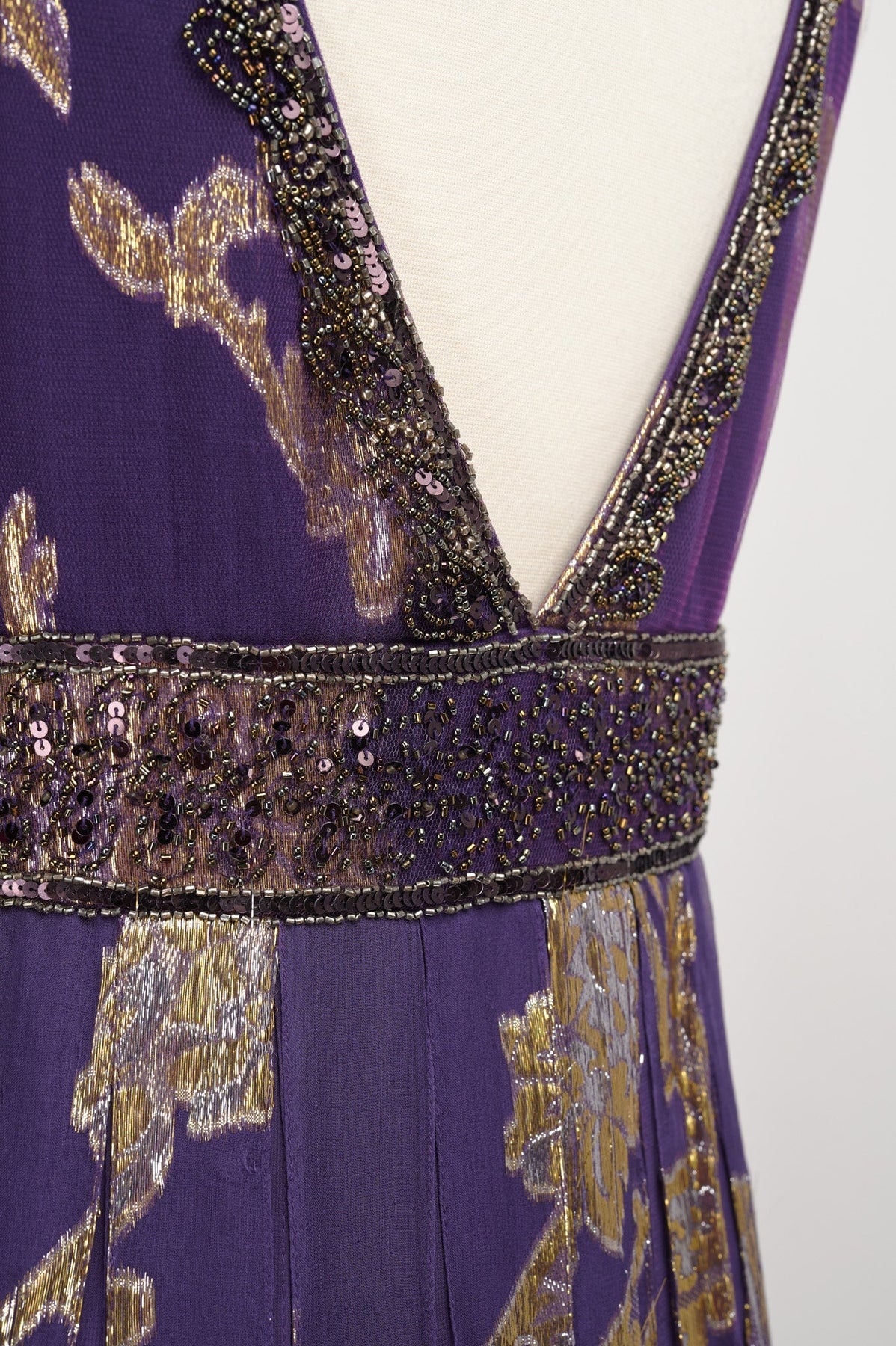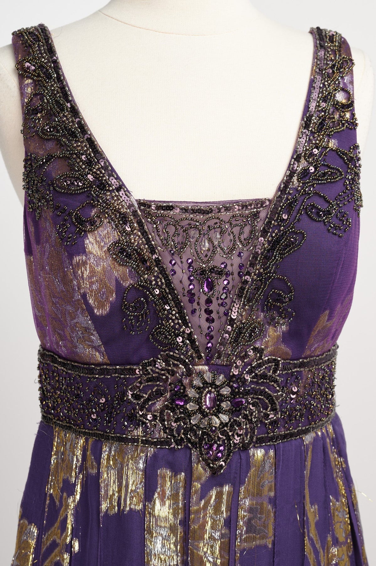 Early 2000s Sue Wong Chiffon Car Wash Dress in purple and gold