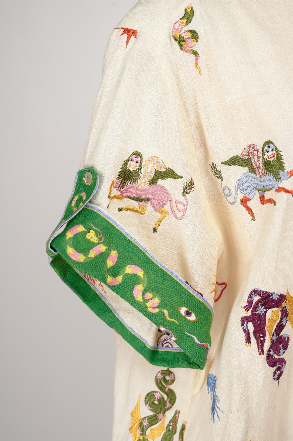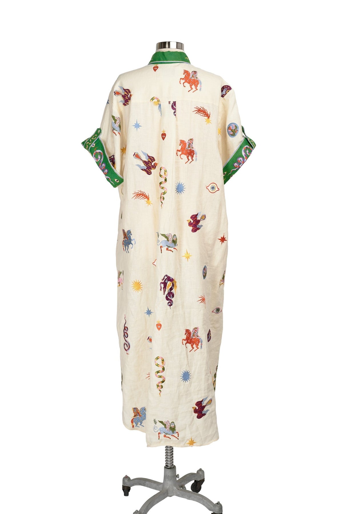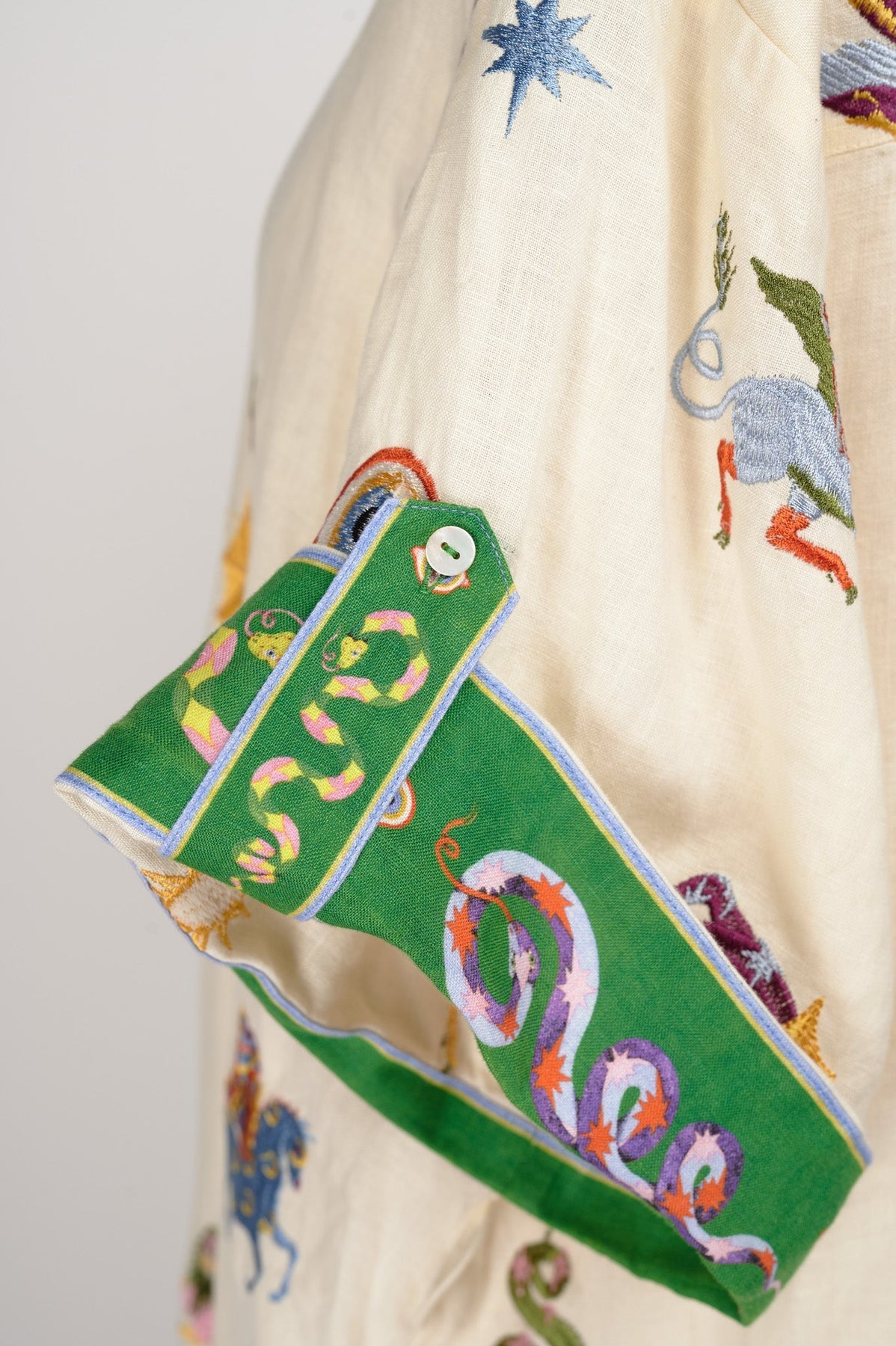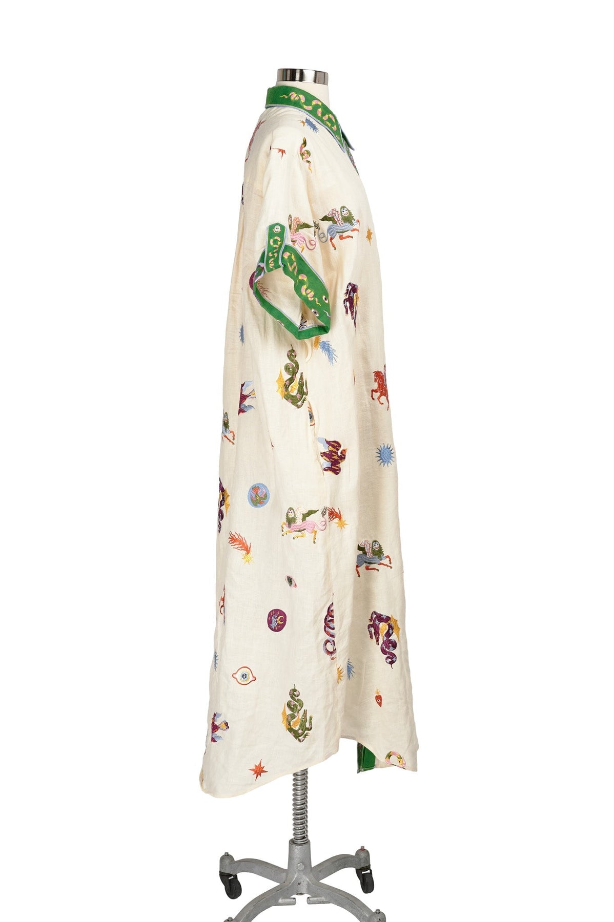 Alemais Seeker Embroidered Shirt Dress in cream, green, orange, and purple