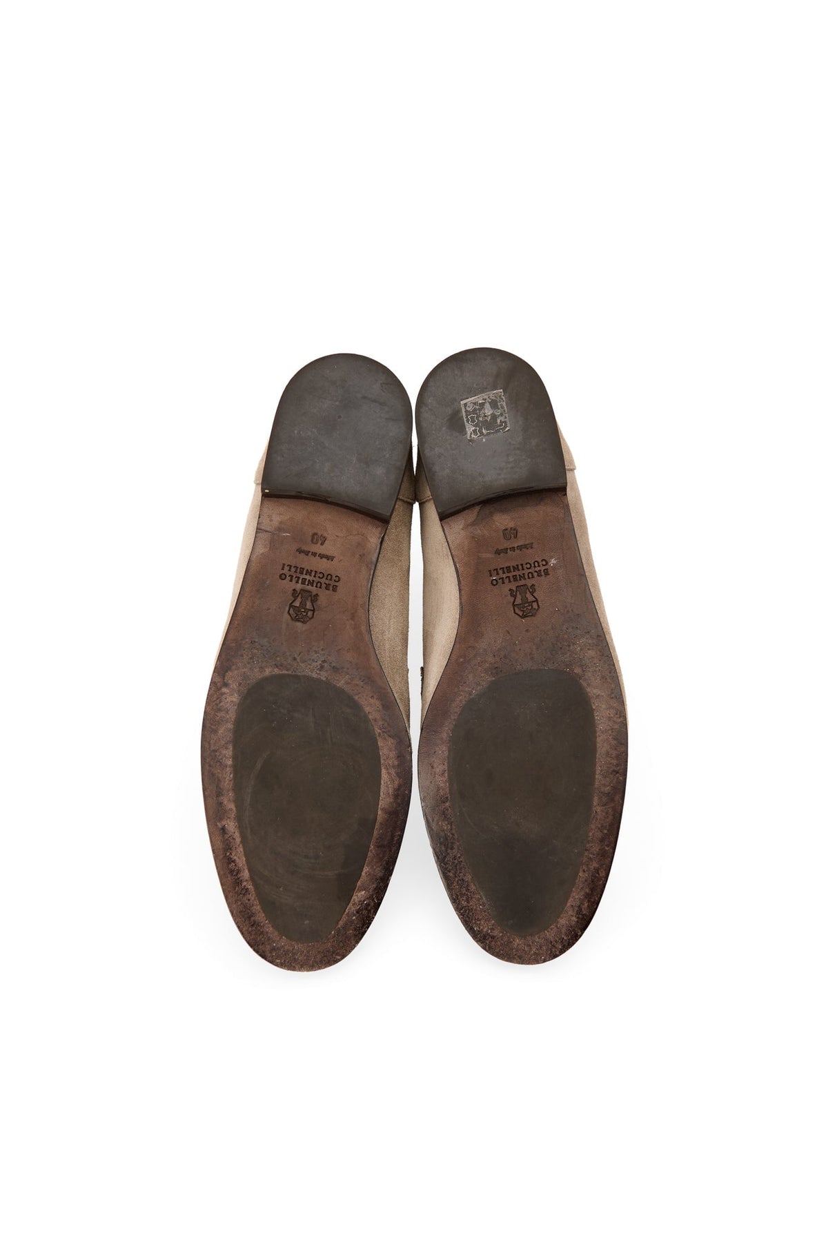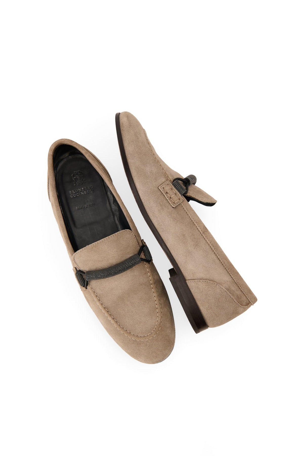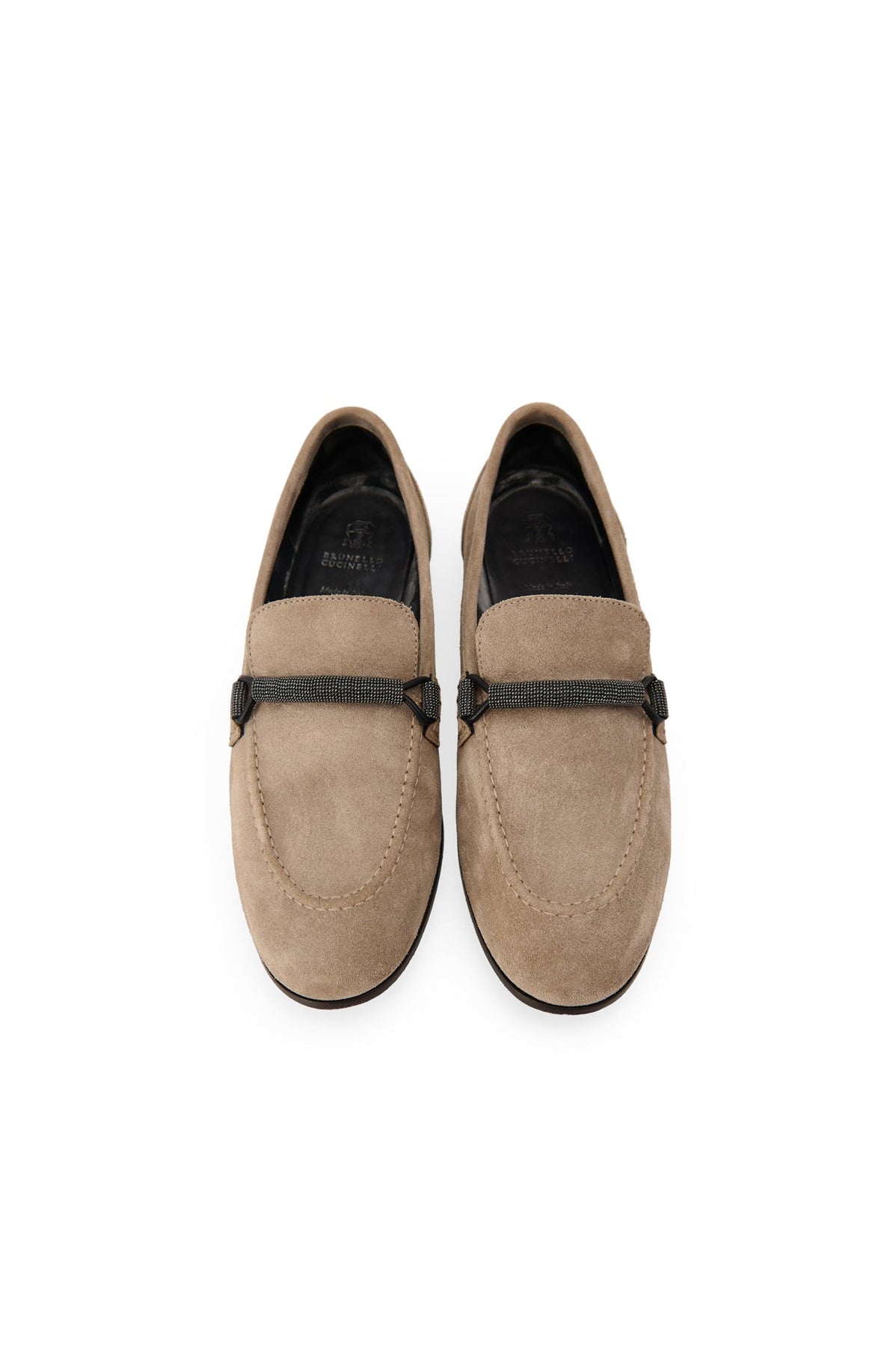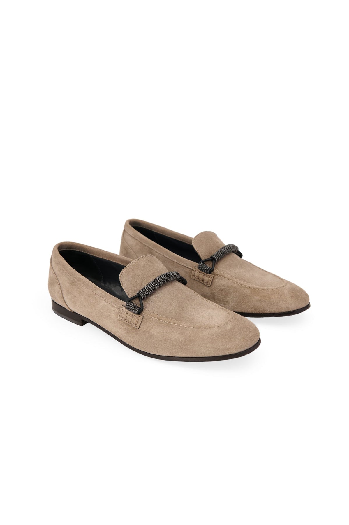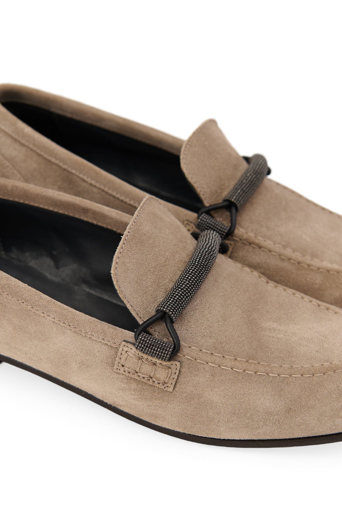 Brunello Cucinelli Monili Suede Loafers in taupe