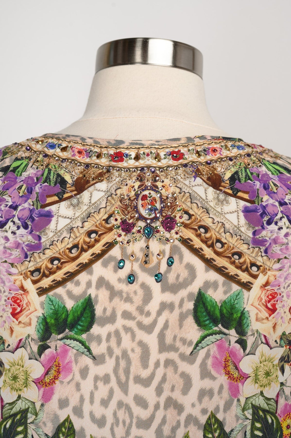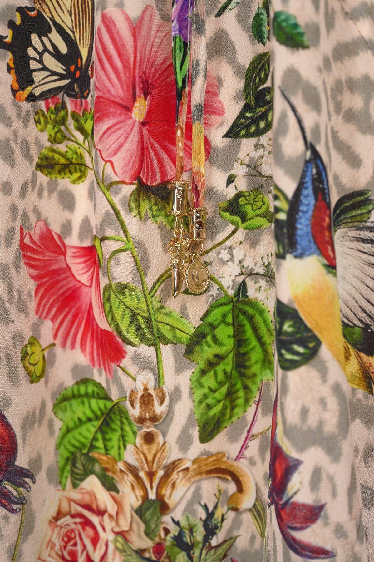 "Leo's Bouquet" motif including butterflies, florals, hummingbirds, and animal print
