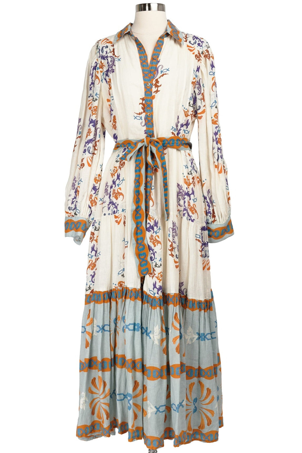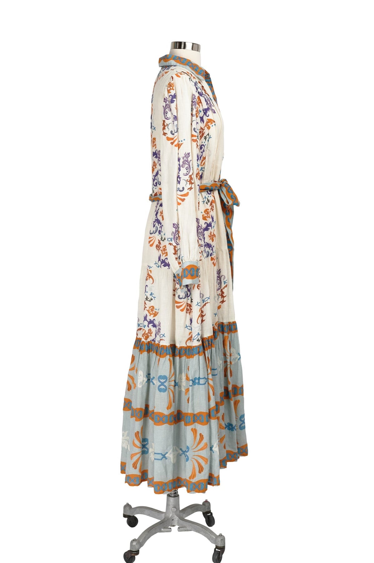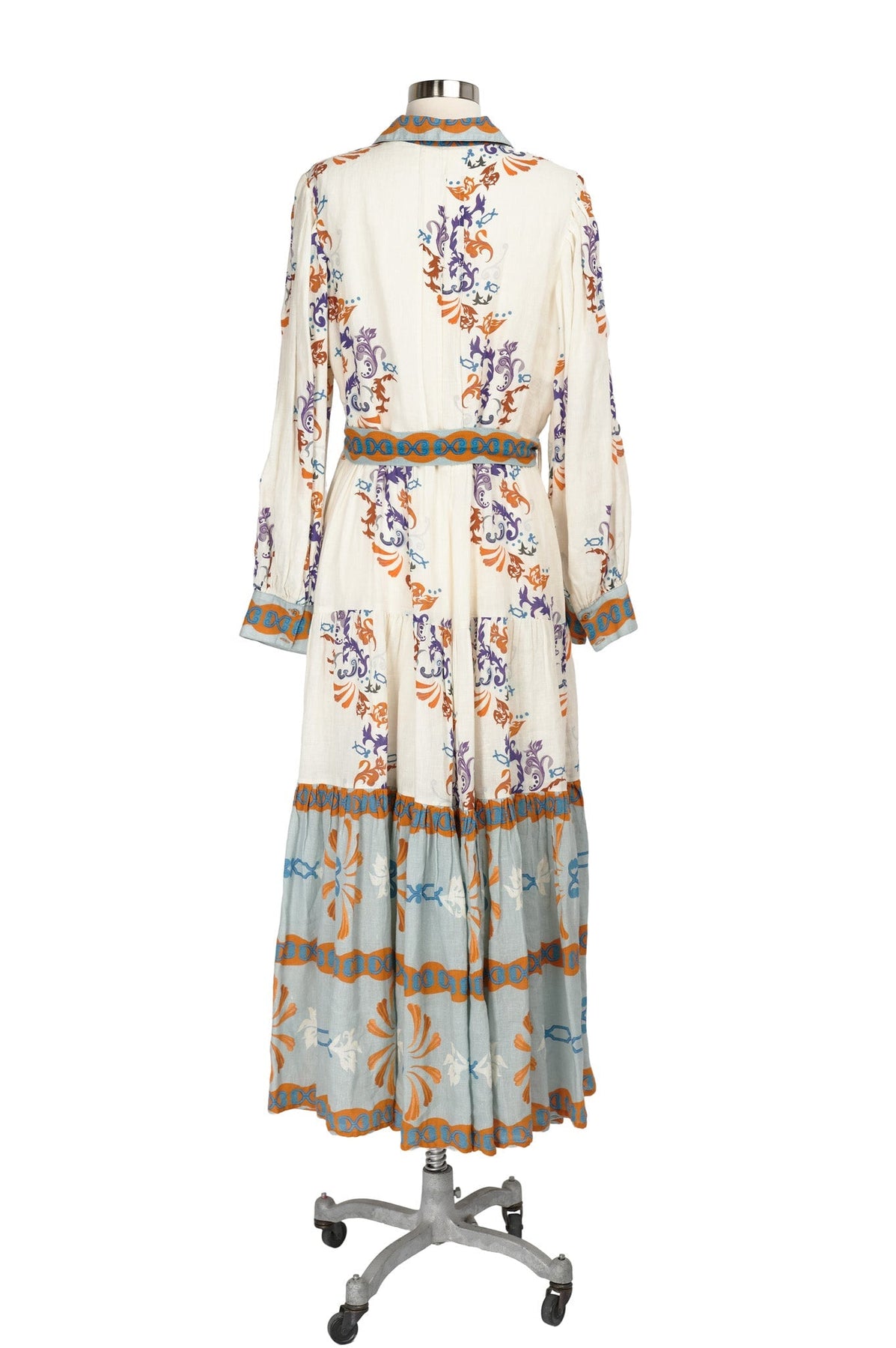 Carolina K Eterna Marie Jane Dress in cream, burnt orange, teal, and royal purple