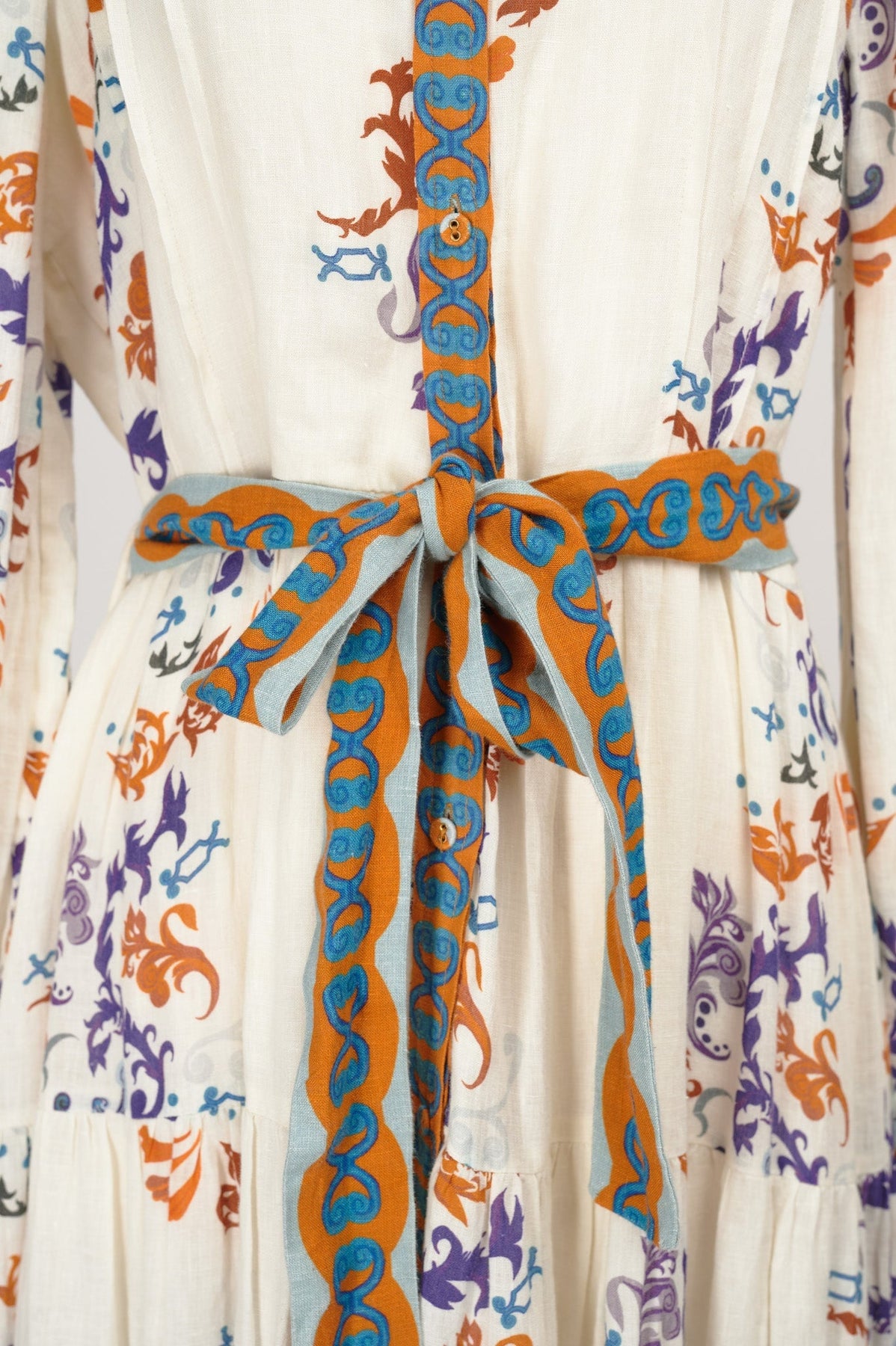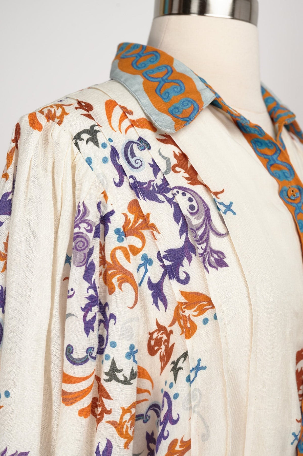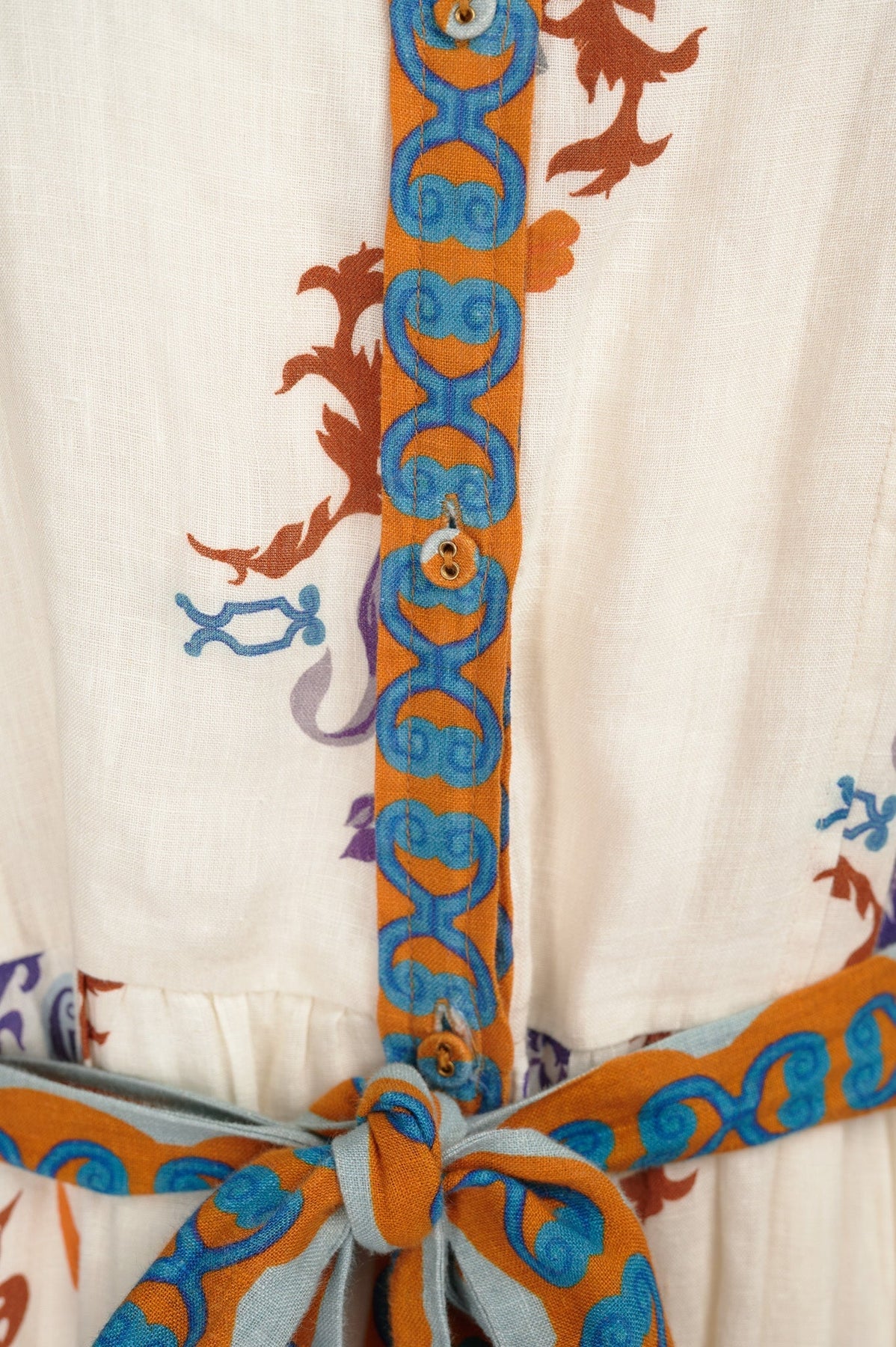 Carolina K Eterna Marie Jane Dress in cream, burnt orange, teal, and royal purple