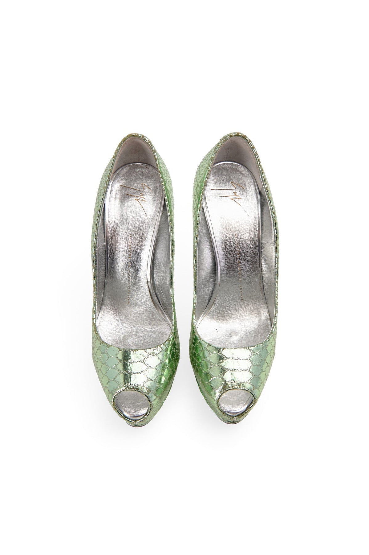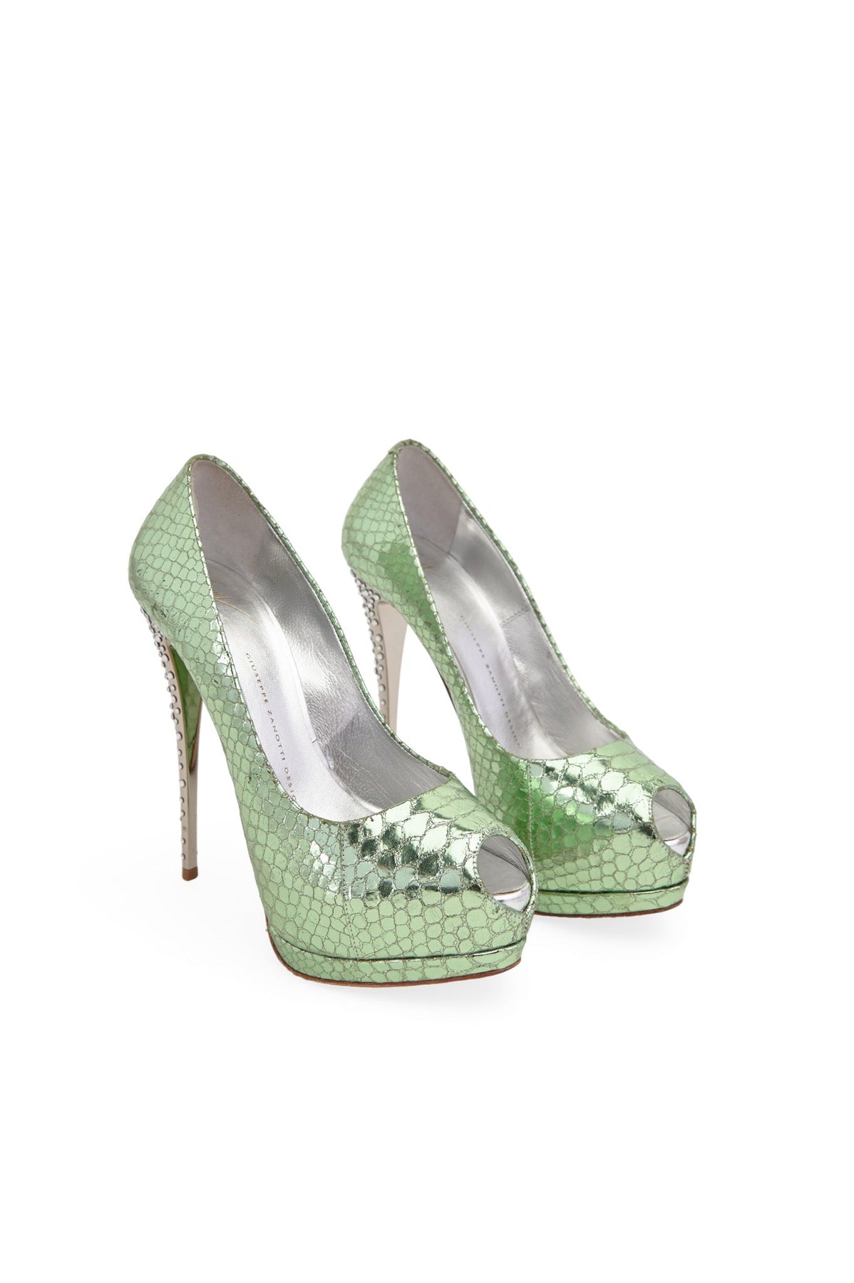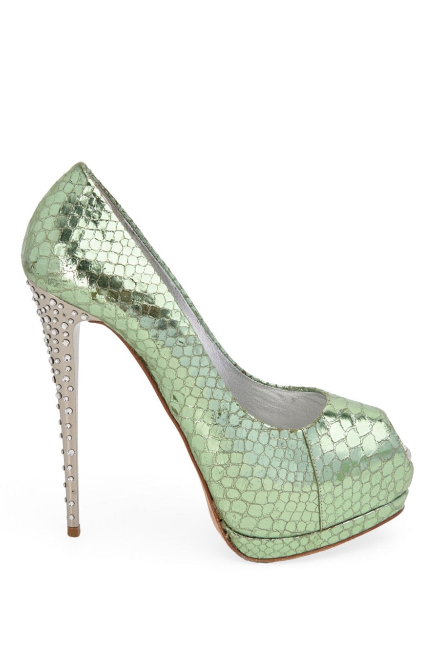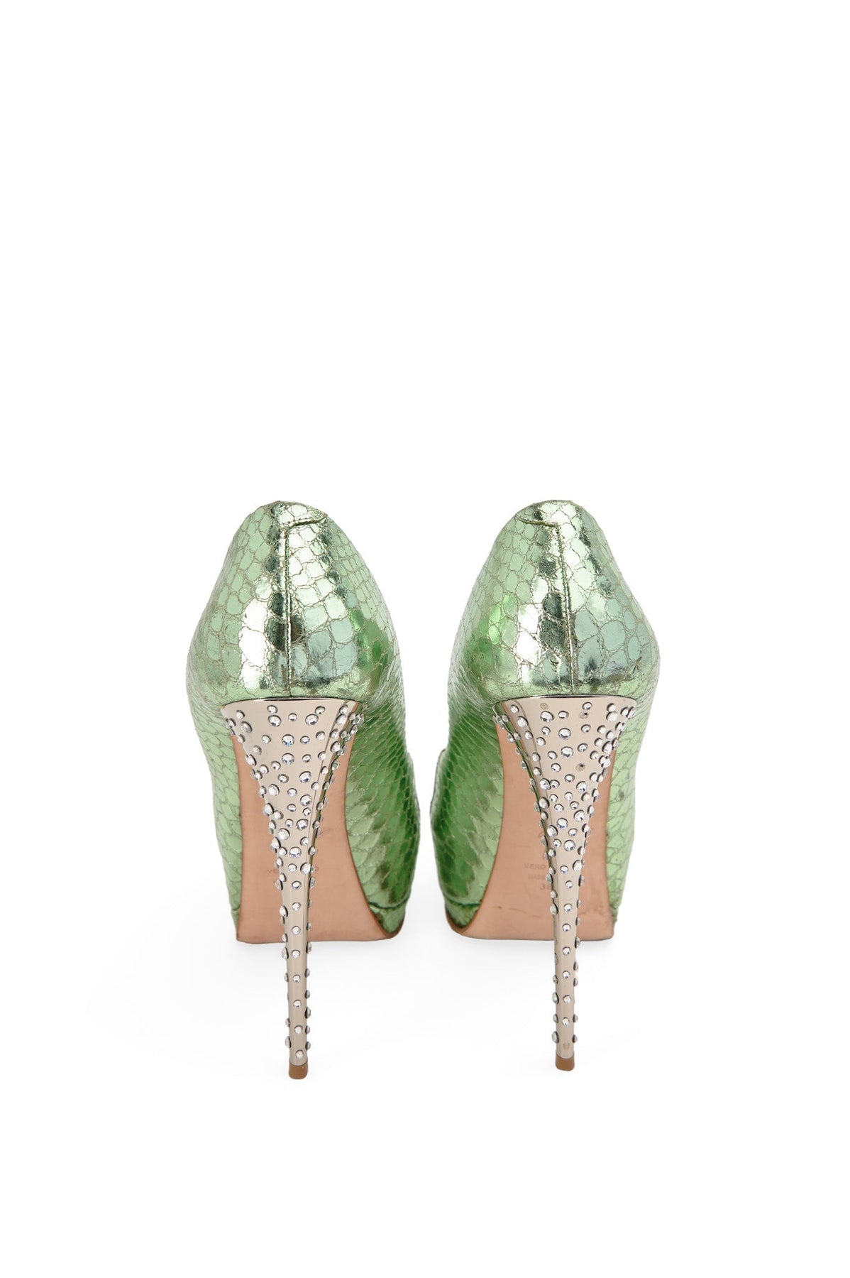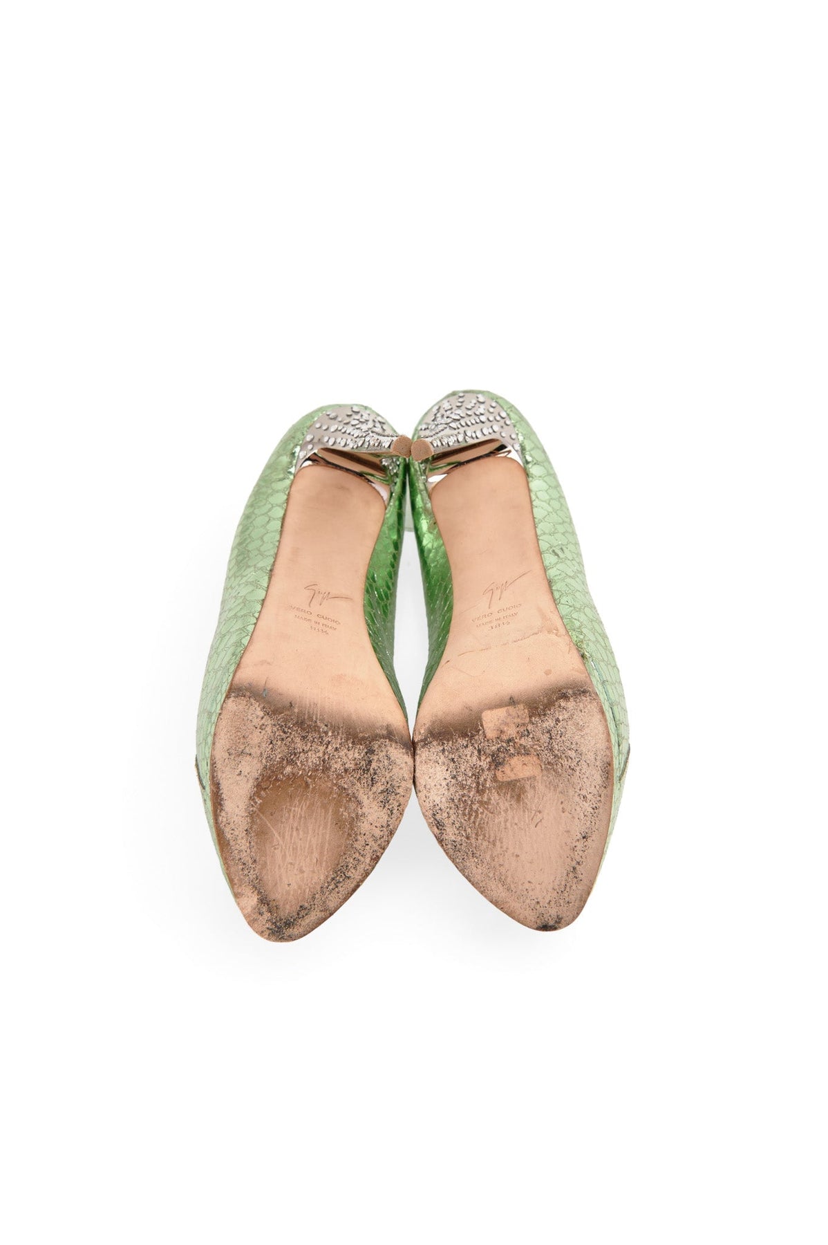 Giuseppe Zanotti Snake Print Platform Pumps in mint green