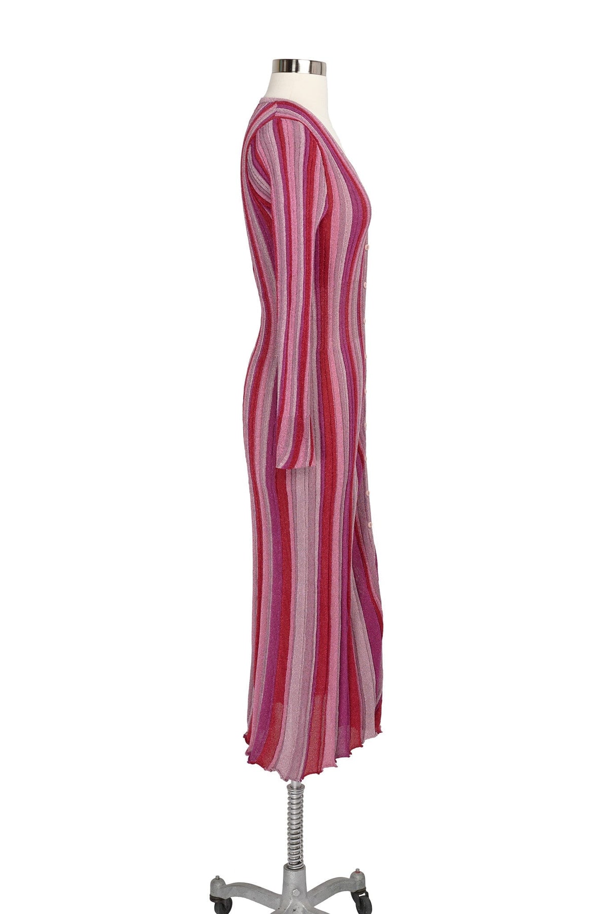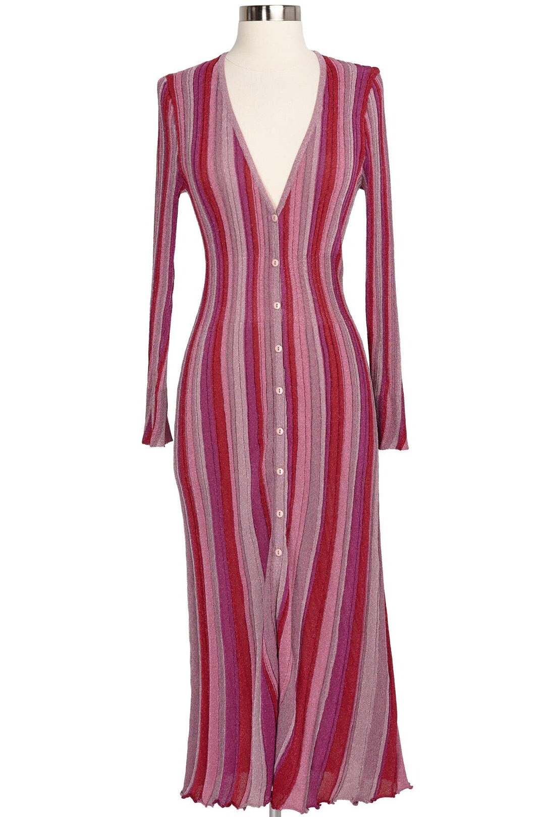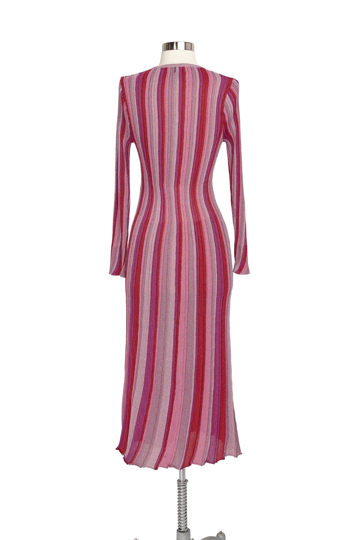 Misa Ribbed Long Dress in cranberry, pink, and silver
