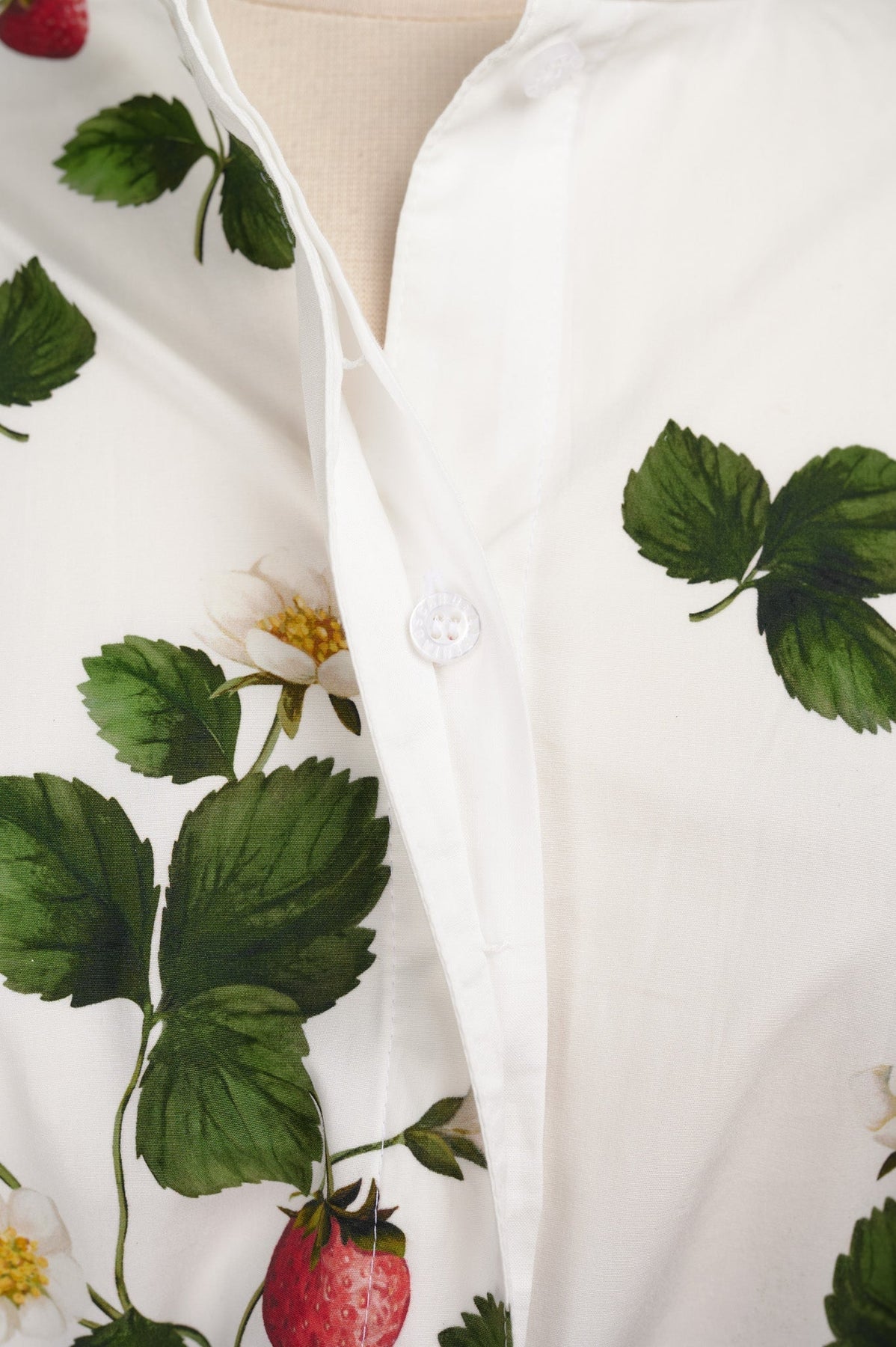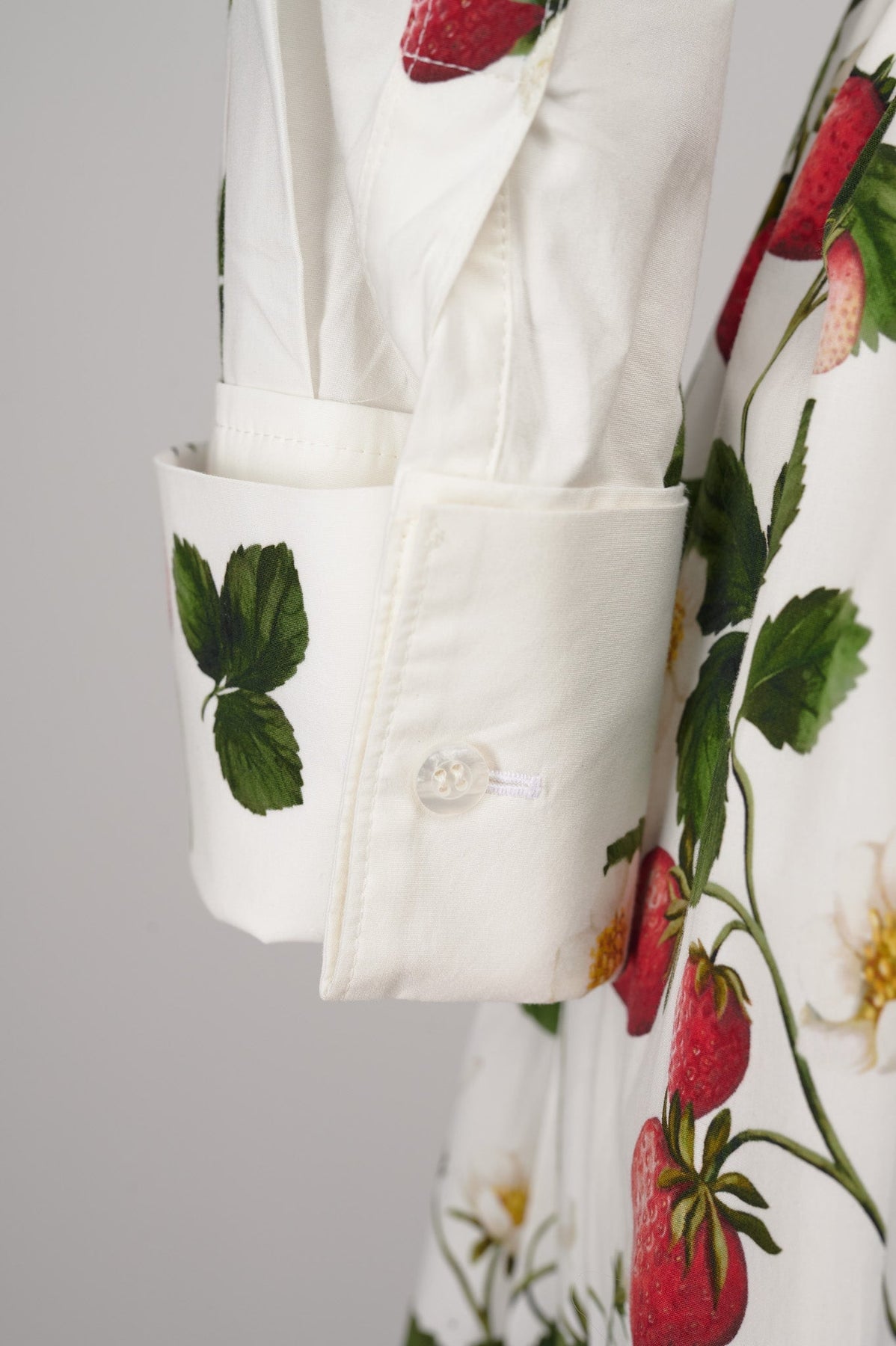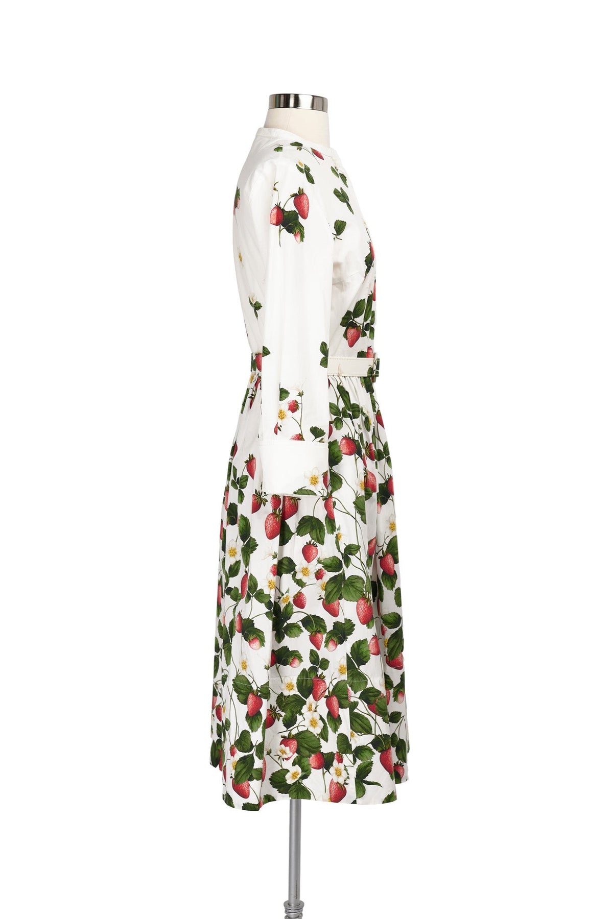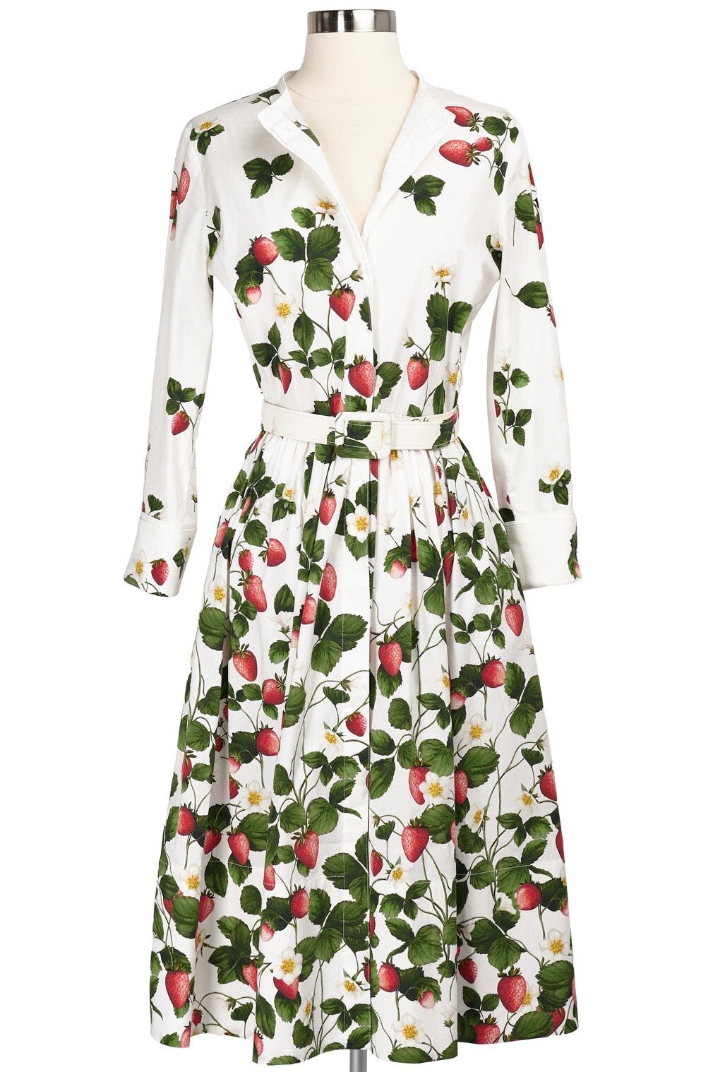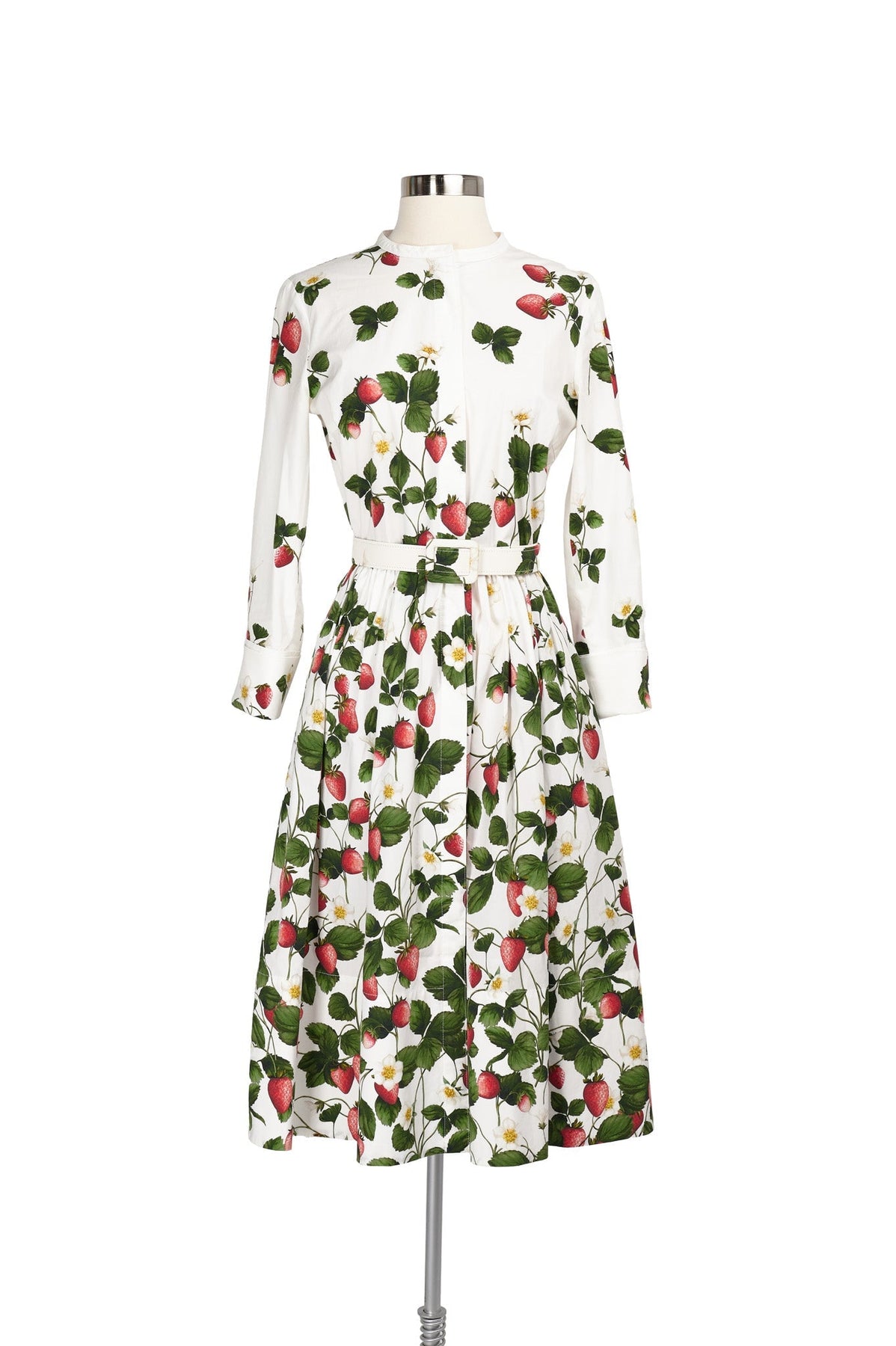 Oscar de la Renta Strawberry Dress in white, green, and red