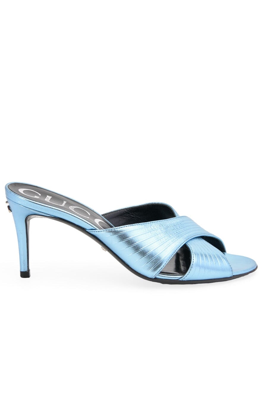 Pre-loved Gucci Metallic Mules in blue