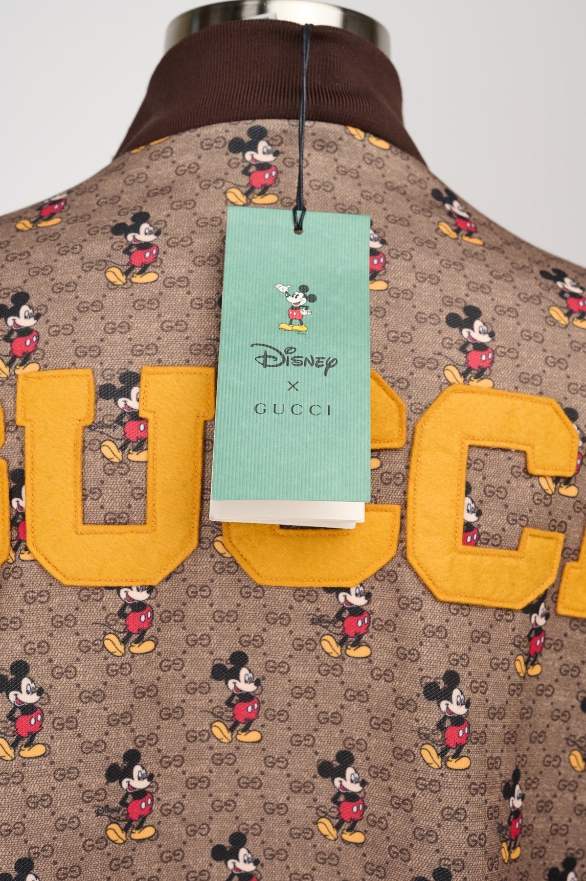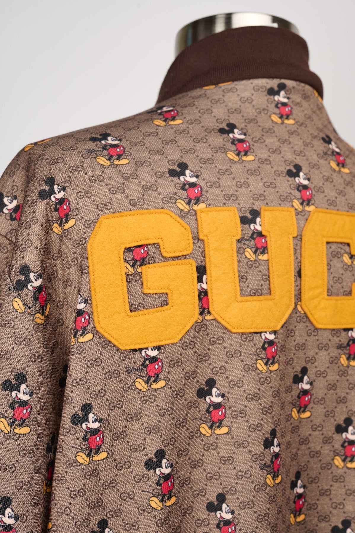 Yellow Gucci varsity lettering at the back