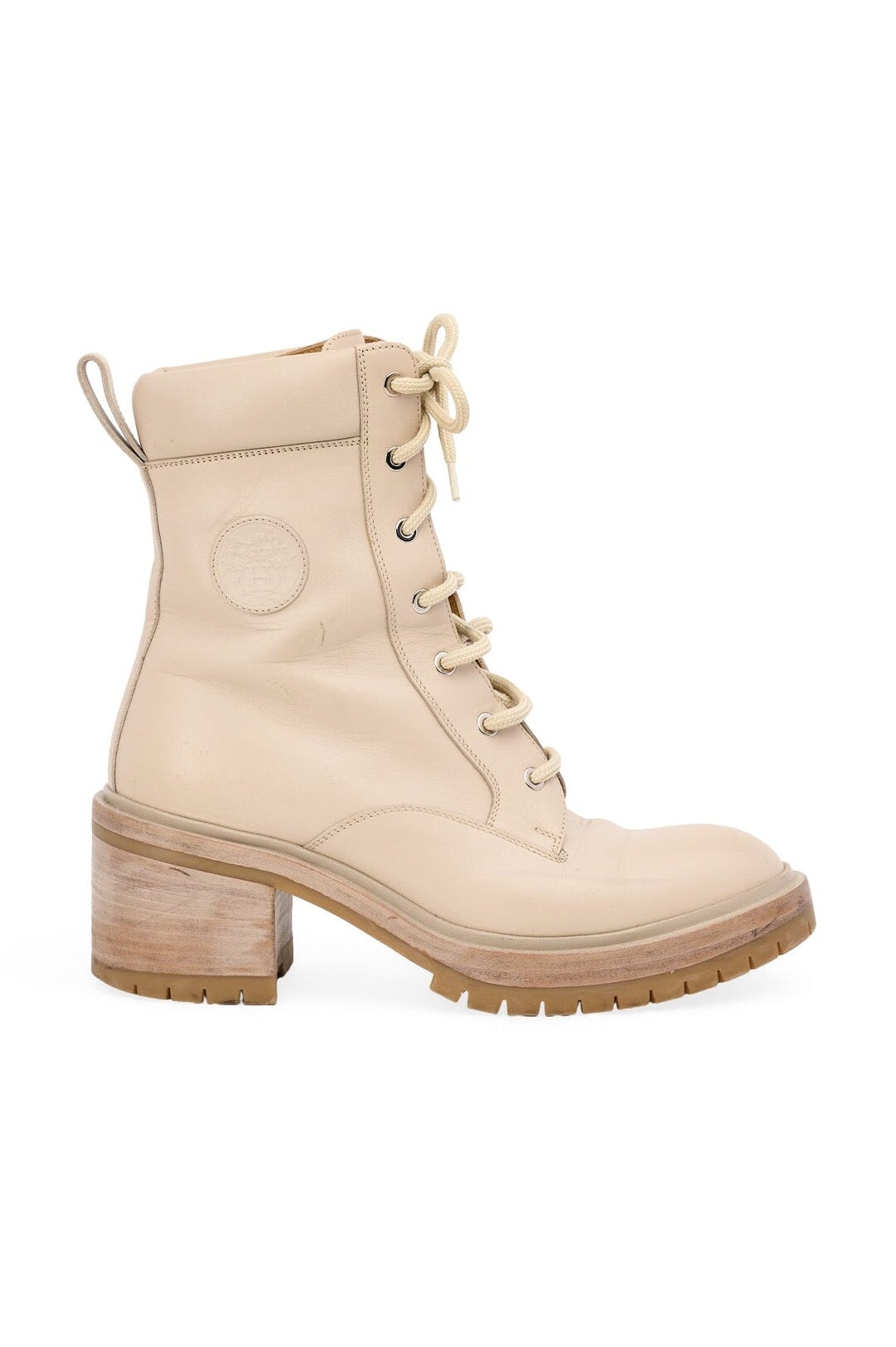 Pre-loved Hermes Bridge Ankle Boots in beige