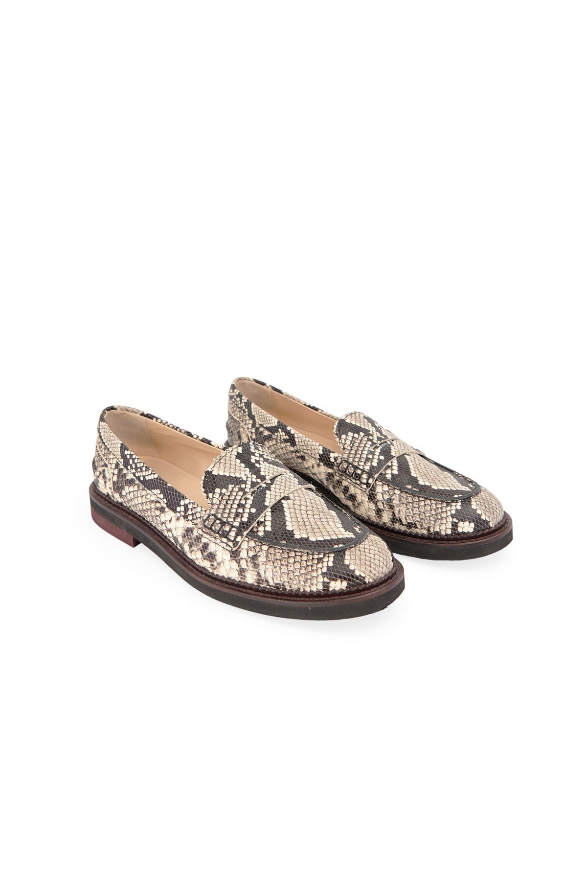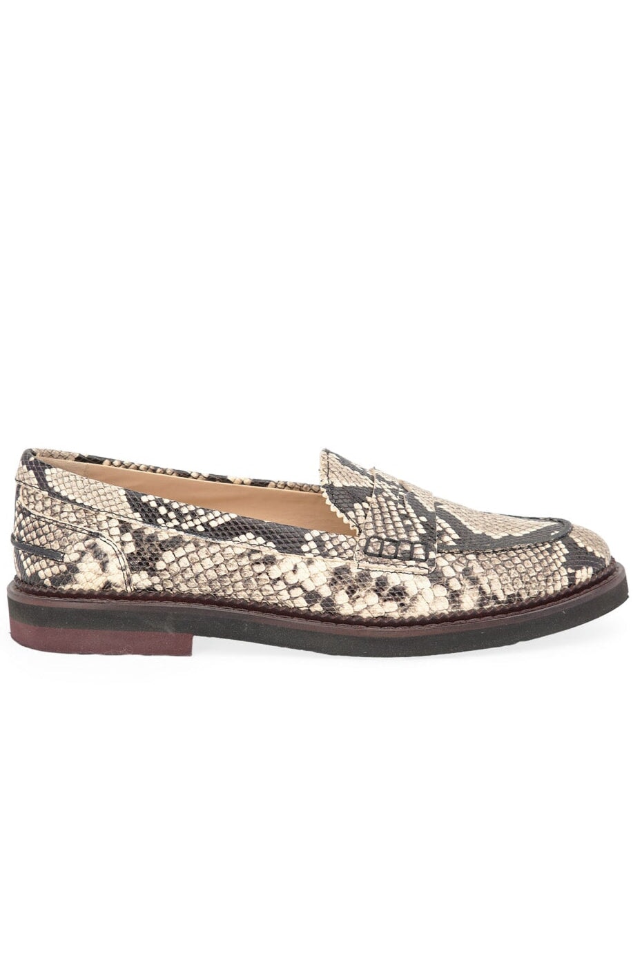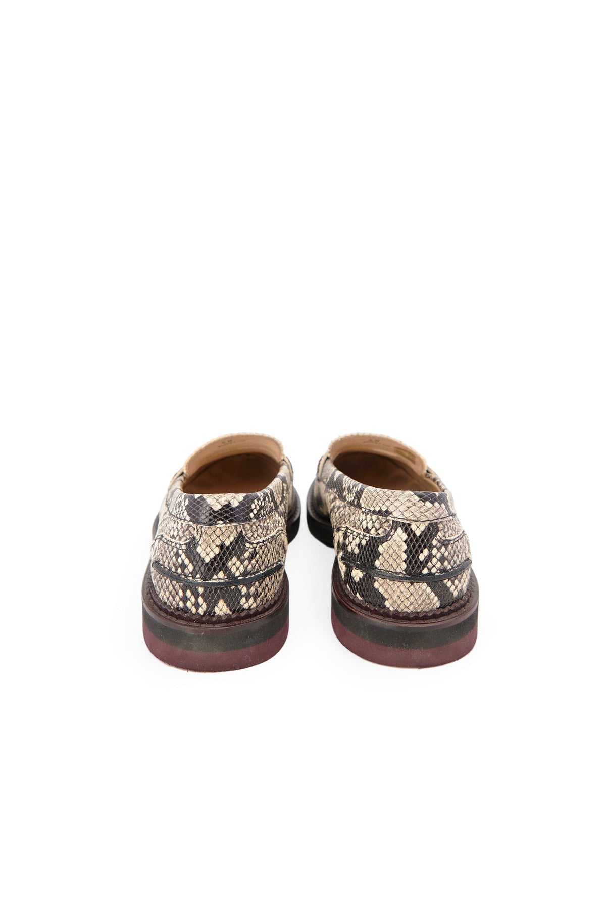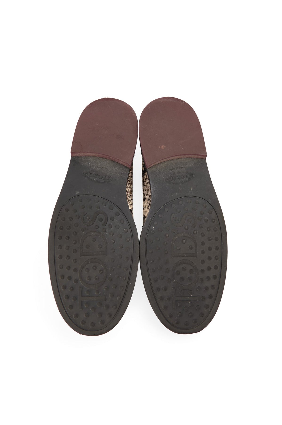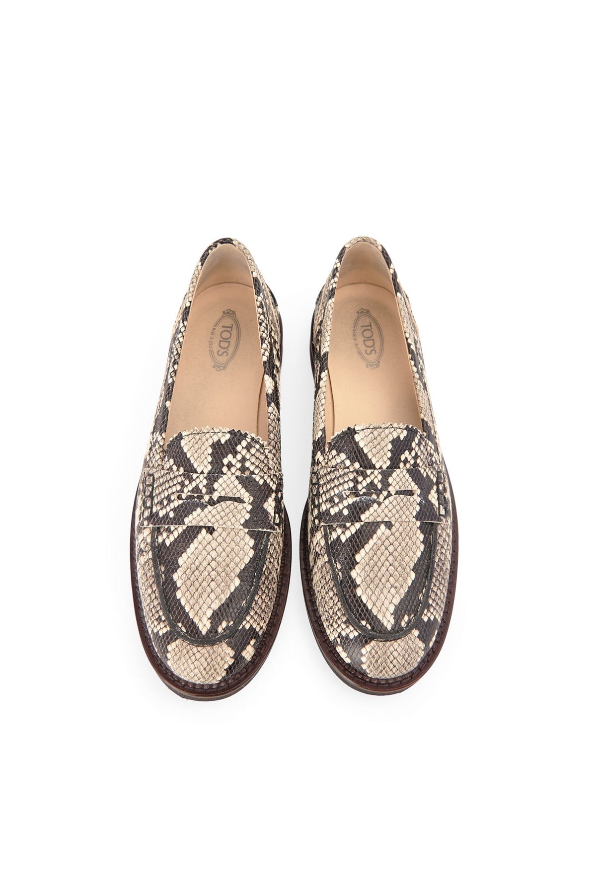 Tods Snake Print Loafers in black and taupe